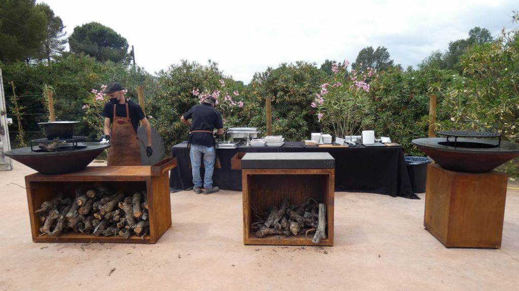 Un lloc ideal per a realitzar aquesta proposta gastronòmica envoltat de vinyes i un paisatge bucòlic on la Piaggio Ape 500 (model de l’any 1964) que acaba d’arribar a la masia de Can Martí, reconvertida en “moto-bar” vintage donar un toc a l’esdeveniment retro molt divertit, acompanyada al fons de dos magnifiques i grans graelles de foc de llenya de vinya