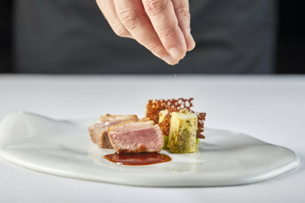El terso rape a baja temperatura, curado en sal, con emulsión de kale, plancton y unos puntitos de albeldo de limón, así como el cordero deshuesado con el arraigado licor de palo (de algarrobas), crujiente de boniato y espuma de yogur son otros momentos estrella.