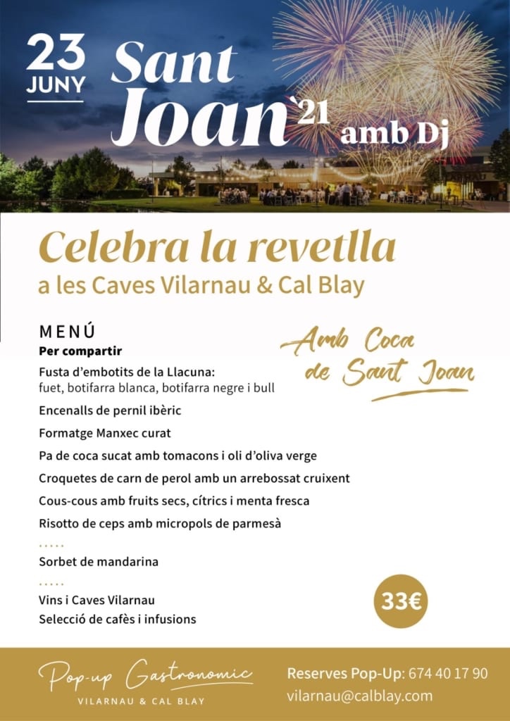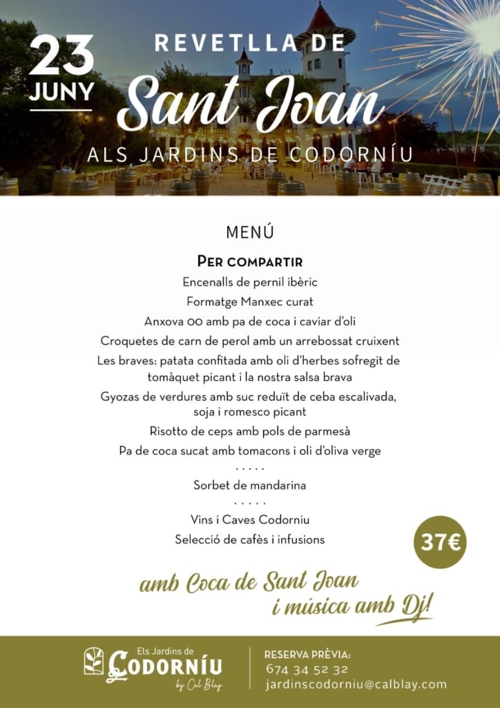 Los restaurantes donde celebraremos la verbena son Els Jardins de Codorníu, el Pop-up Gastronòmic en Vilarnau y El Nàutic. Los menús son ideales para compartir, con propuestas deliciosas para disfrutar de la cena que inaugura el verano. ¡Tres opciones muy atractivas donde el problema será elegir!