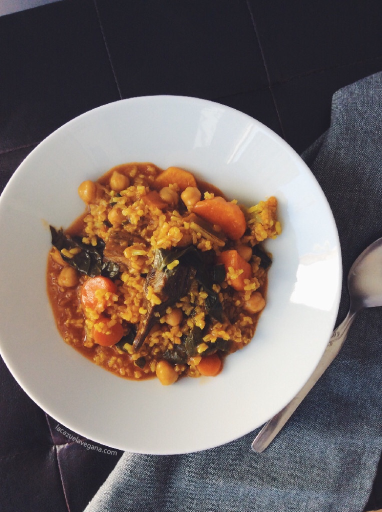 Nos gusta mucho este Arroz caldoso de temporada de La Cazuela Vegana. Es una reivindicación del arroz caldoso típico del País Valenciano, que se reinventa como plato vegano, de aprovechamiento y con verduras de temporada. Un plato sano, sabroso, nutritivo y reconfortante para los días más fresquitos de primavera. Ah, y nuestro Flor de Pinot es el acompañante perfecto: le aportará el toque de elegancia y potenciará los diferentes sabores.