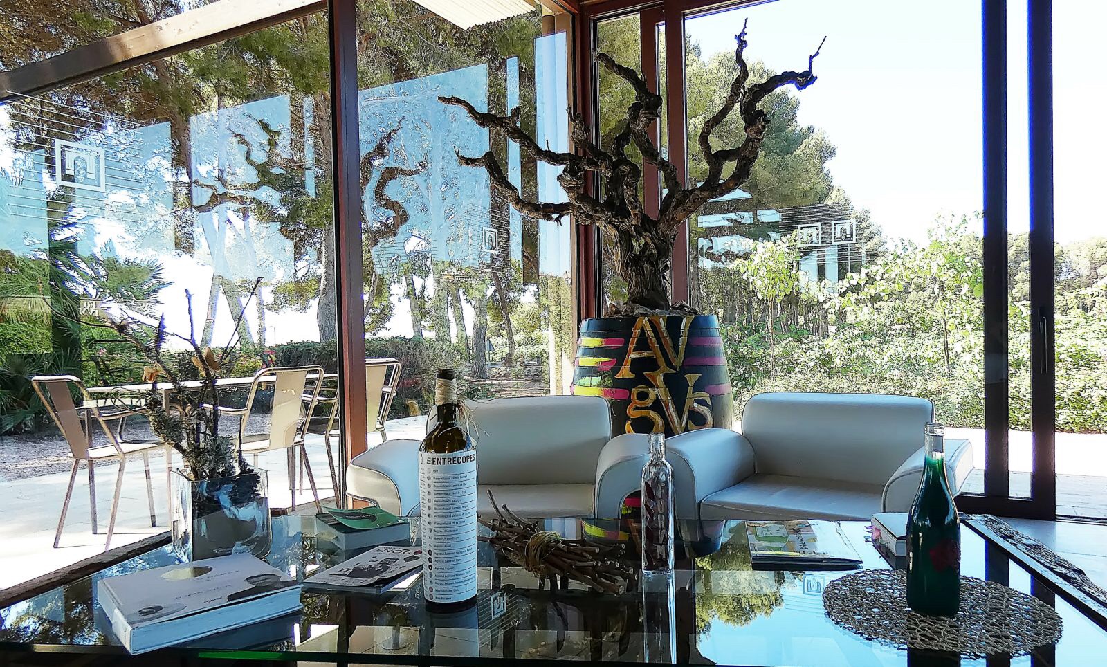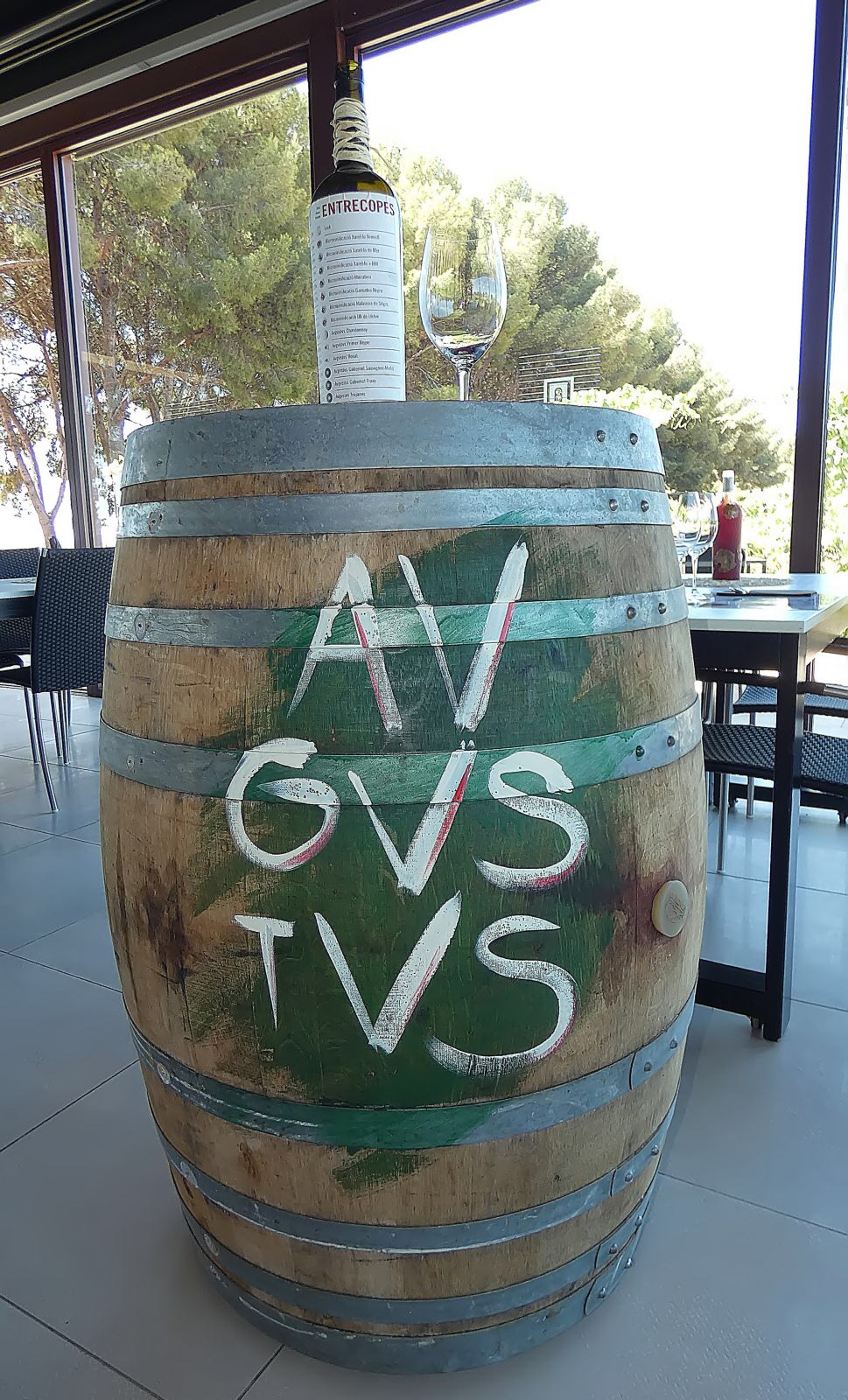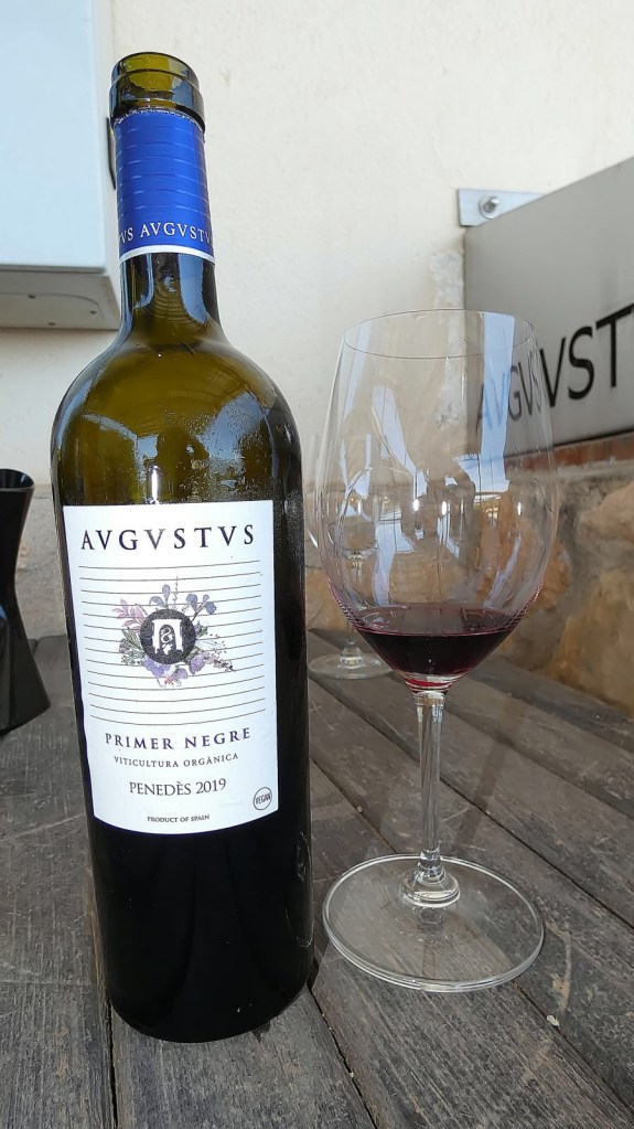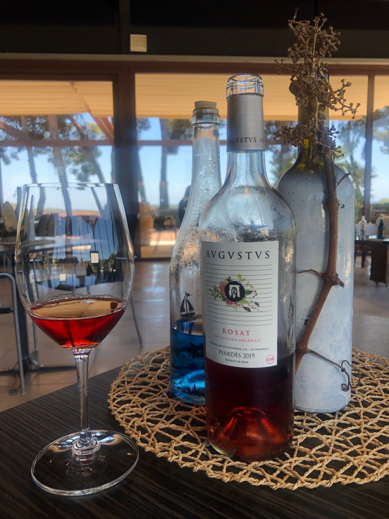 Antes de mostrarnos los Cellers de vino y vinagre pudimos catar el vino blanco joven LOOK muy aromático y refréscante, el cual está destinado a un público más joven que se inicia en el vino, a continuación, catamos el vino tinto AVGVSTVS con un poco de más de cuerpo, pero también un vino del 2019 joven y agradable al paladar