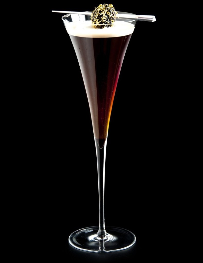 - Bate todos los ingredientes en la coctelera durante 10 segundos excepto Cordón Negro.