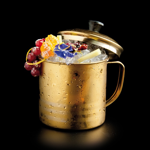 - Decora el cocktail con una mora adornada con virutas de oro.