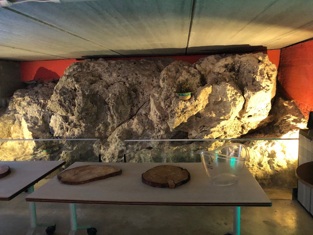 Seguim amb la visita a la qual el Lluís , ens va explicar amb molts detalls i anècdotes la història des dels seus inicis fins a l’actualitat, visitant el celler en la qual vam poder observar les seves grans roques, i en aquest entorn ens va instruir amb un bonic i il·lustratiu vídeo, en el qual es plasma i transmet la passió pel món de l’vi i cava, que ens va encantar i va captivar, a tots els que estàvem allà.