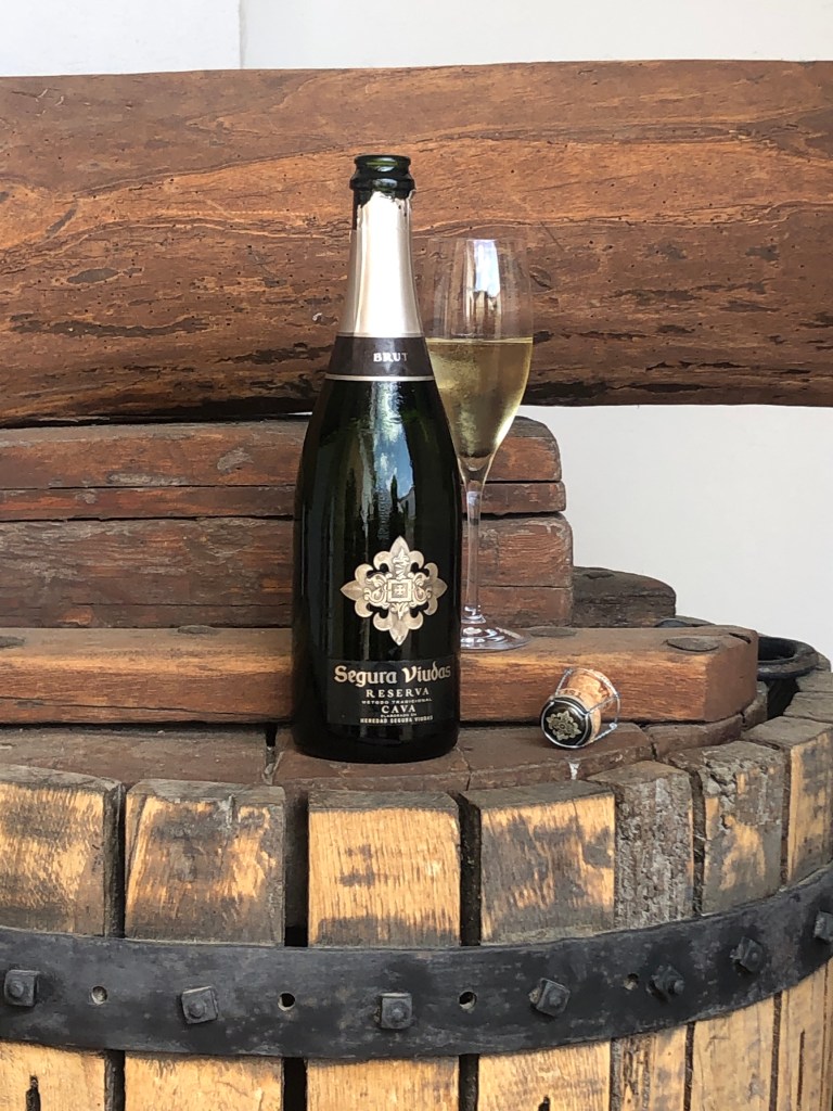 - Reserva de Heredad (cava) y tapa de jamón ibérico.