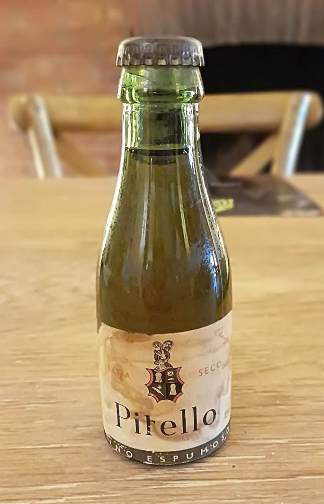 mentre, l’Alicia ens va explicar l’anècdota d’unaa petita ampolleta vintage, que advertim que tenen, entre altres molts records d’antany, era una petita ampolla de cava anomenada “Pitelo”, que van elaborar la societat “la Unió Xampanyera”, formada per les caves Rigol, Castellblanc, Calixtus i Permont’s , que es feien dir els 4 asos blancs, aquest ” Pitello “, es va vendre com l’escuma per tota la Espanya de l’època, desaparexeint quan es va dissoldre la societat.