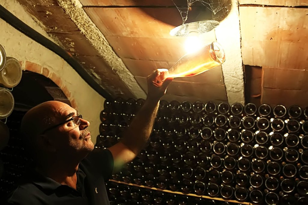 Després de la grata i amena introducció i explicació que ens va oferir l’Alícia, que és un encant, vam anar amb el Martí com a guia a visitar el petit celler on ens confirma que tot el procediment s’efectua manual i ho fa ell, així com el “degüelle” de cada una de les ampolles elaborades, ens va fer una demostració i vam quedar impressionats, ja que era la primera vegada que ho contemplàvem en viu