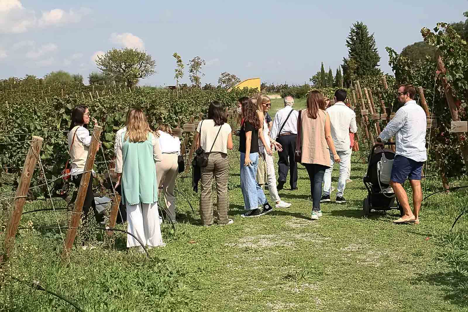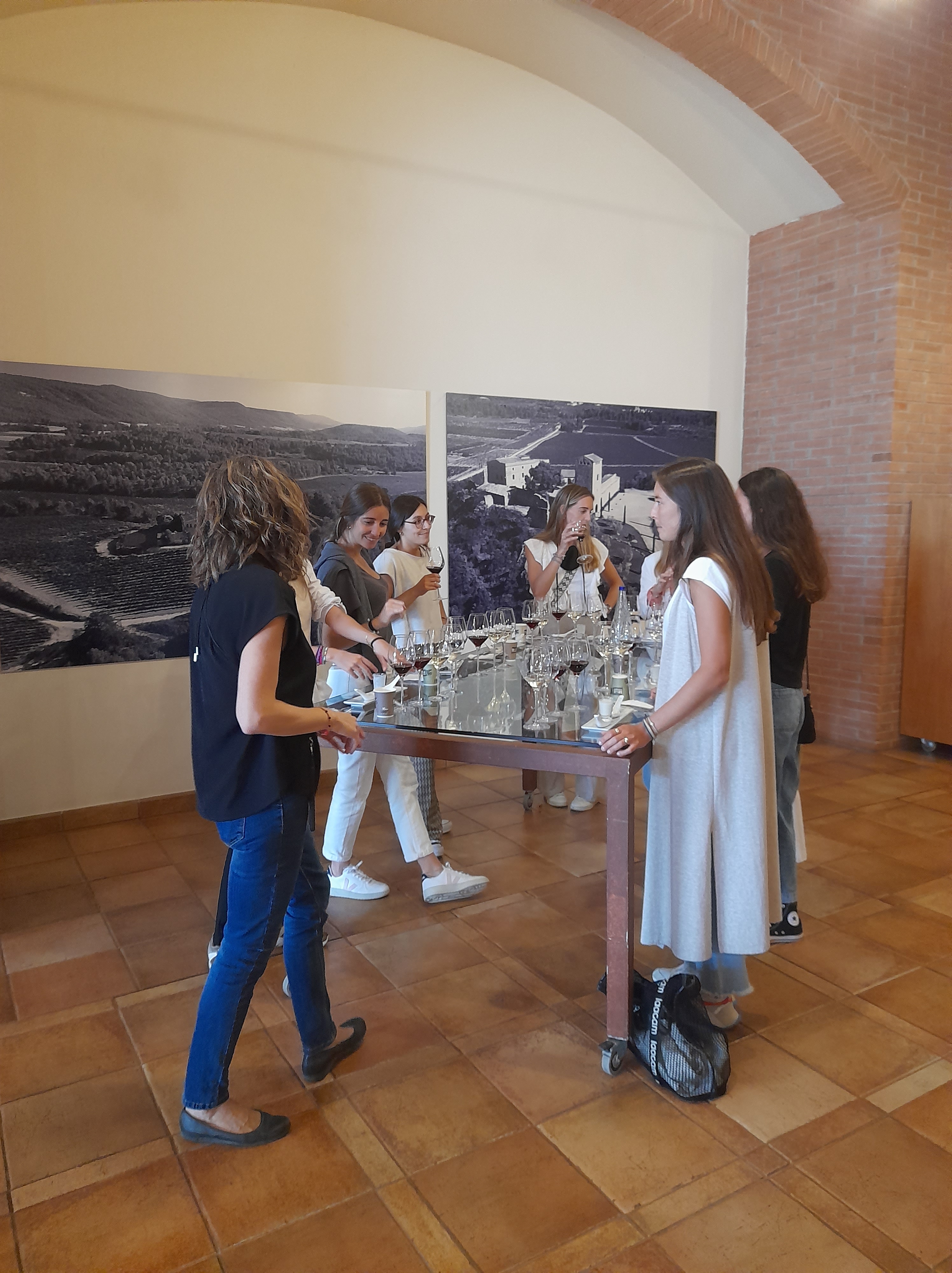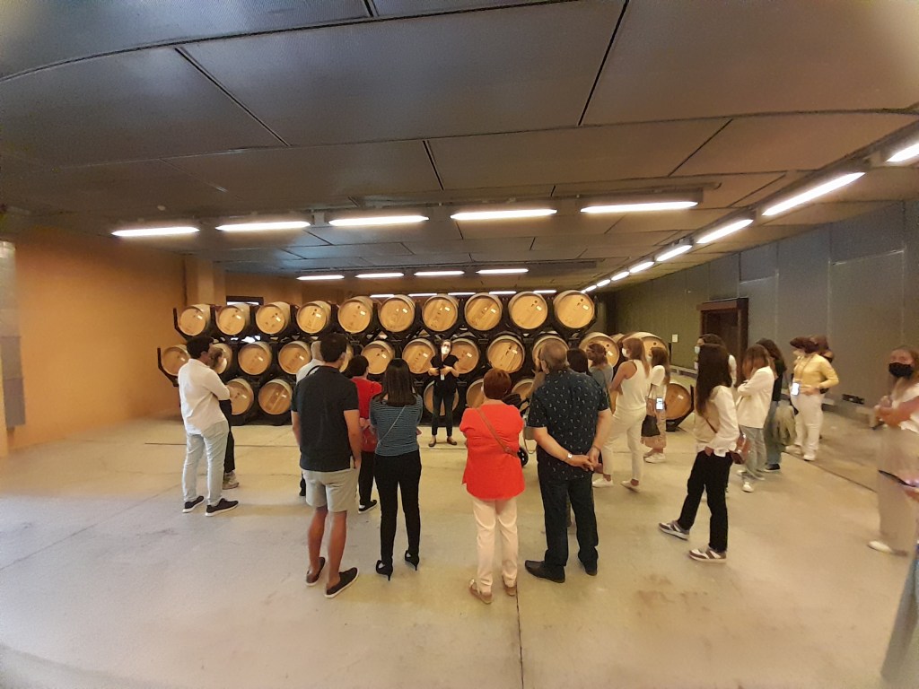 La nova experiència comença en una sala disposada com un petit cinema, en el qual a través de la pantalla coneixes l’inici, recorregut i llegat de la família Torres, fins al dia d’avui, posteriorment, es visita una vinya, en la qual hi ha una mostra de cadascuna de les varietats de raïm de les vinyes que posseeixen i amb les que elaboren els seus espectaculars vins. La nostra guia, amb una clara i amena explicació, que tots vam agrair i vam comprendre, ens va anar il·lustrant amb la diversitat de raïm que allí es trobaven, mentre anàvem tastant les mateixes i adonant de la diferència d’unes a altres, enriquidora pràctica, a continuació , vam donar un grat passeig per les vinyes i que vam fer en un tren, fins a arribar al celler, de la qual després de l’excel·lent explicació de l’elaboració del vi, per part de la nostra guia, vam baixar a la bodega Waltraud