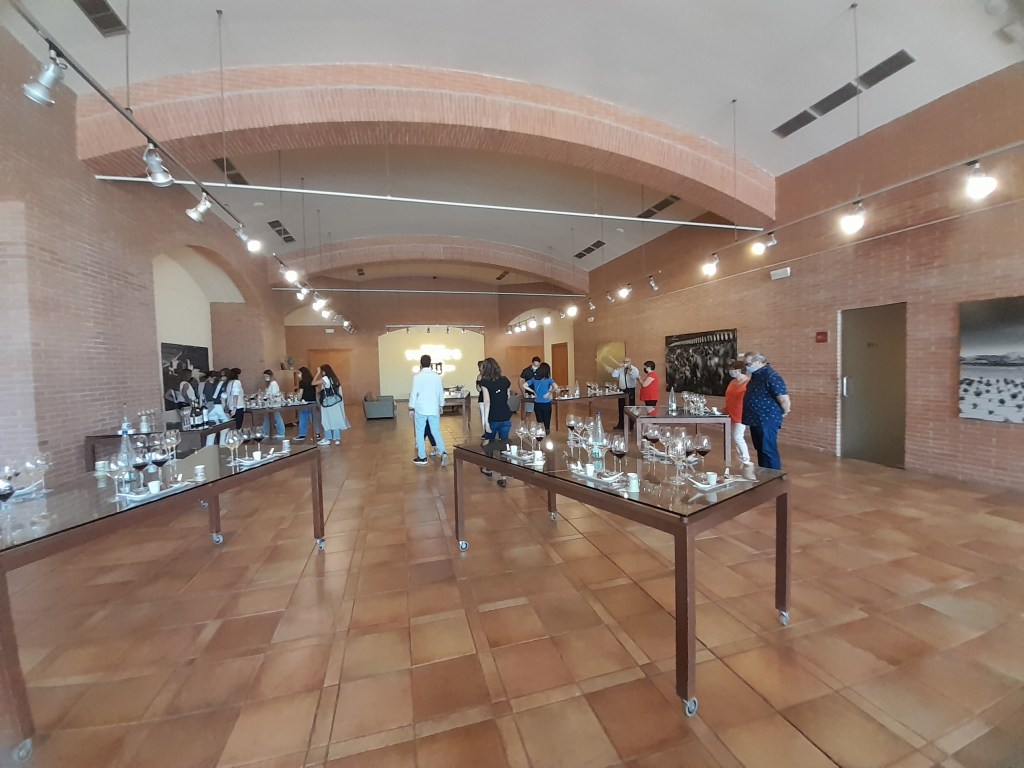 La sala gran, una gran sala buida, càlidament il·luminada, amb música ambient, plena de columnes i res més, però, sorpresa, de cop i volta s’apaguen els llums i tot al voltant de la sala s’il·lumina amb uns aparadors on es presencien bótes amb el nom de cada un dels vins que conté les mateixes, es respira intimitat, tranquil·litat i relax, és un moment màgic i un lloc majestuós.