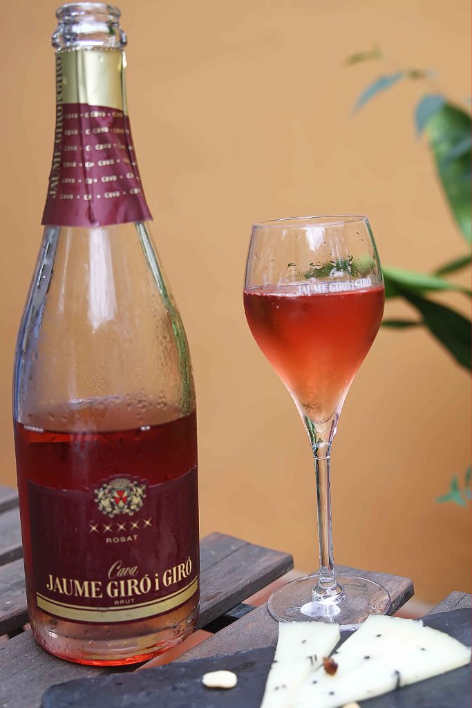 formatge d’herbes amb cava ROSADO de CAL REI Trepat .Un cava rosado de finísimas burbujas de color rojo intenso. A la contra etiqueta encontrarás un termómetro que indica con el cambio a color azul, cuál es la temperatura ideal para que disfrutes plenamente