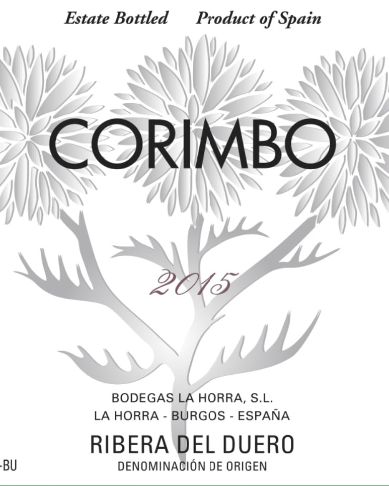 Bodegas LA HORRA presenta CORIMBO I 2015, un vino 100 % tempranillo, procedente de viñedos viejos ubicados en La Horra, Roa y pueblos colindantes en Burgos. La añada 2015 ha recibido los elogios de la crítica especializada en distintas partes del mundo, que ha halagado su elegancia, finura y, especialmente, su magnífica longevidad, que hace augurar un grandísimo vino con una excepcional capacidad de crecimiento en botella.