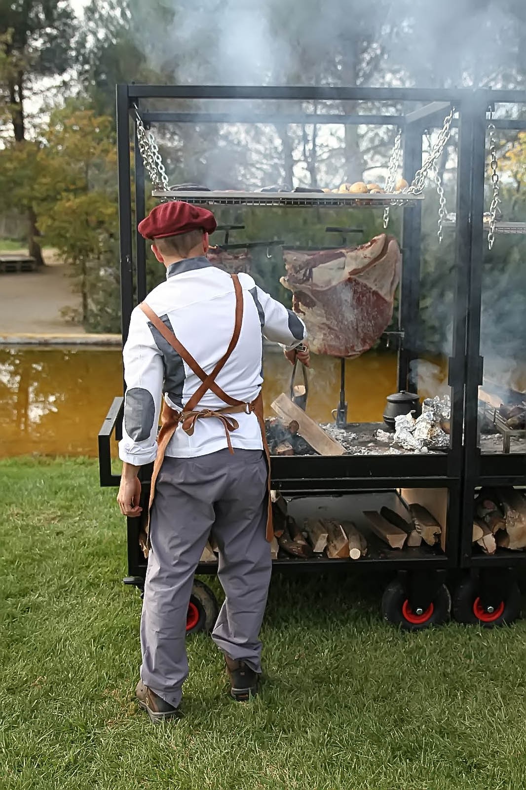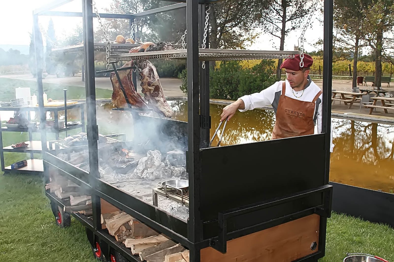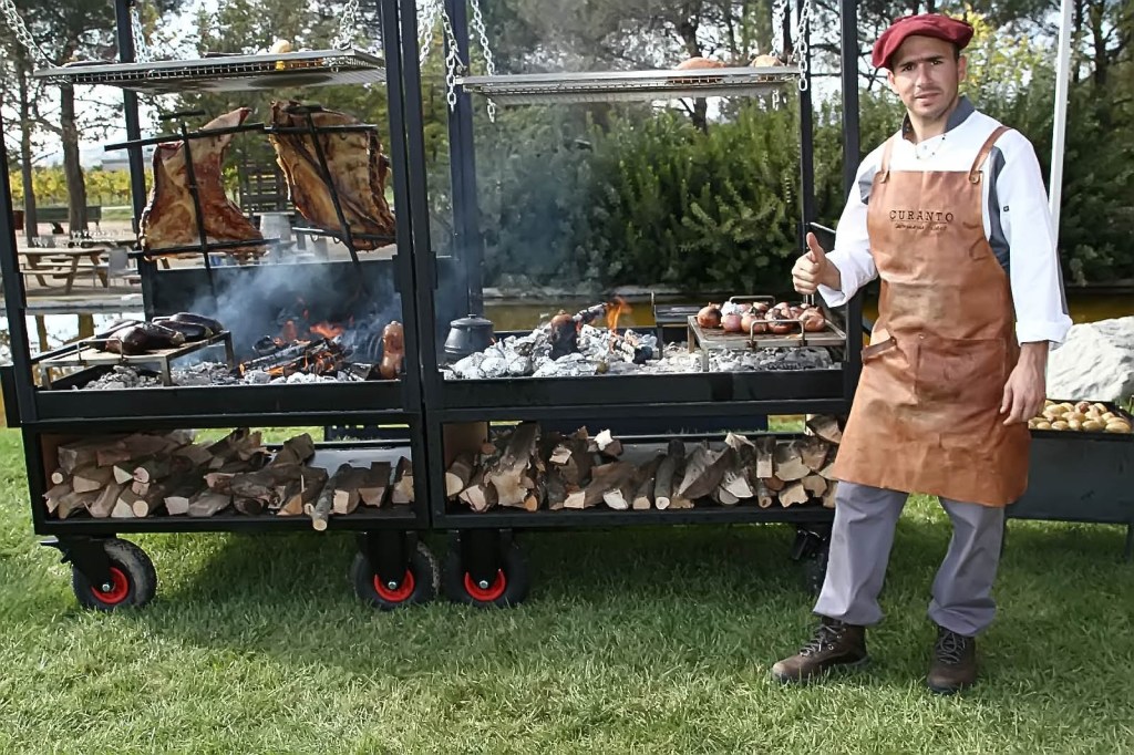 “Curanto” és una petita empresa familiar que porten l’Hernán i la seva dona la Sofia, els dos Argentins una parella encantadora i agradables persones, que ens van atendre amb molta amabilitat i familiaritat, molt propers, l’Hernán és un gran cuiner i expert en Asados, però, sobretot amant del foc i l’aire lliure, cosa que, que amb la seva dona la Sofia promouen i comencen amb aquesta proposta d’elaborar càterings de brasa a l’aire lliure i així emprenen amb l’empresa, però l’Hernán molt compromès i amant de la seva professió, comença a pensar i madurar la idea d’una barbacoa diferent, que li permeti, a part de carn, rostir diversos productes alhora, així com funcionalitat, ja que deu desplaçar-se amb la mateixa a realitzar diferents esdeveniments i llocs.