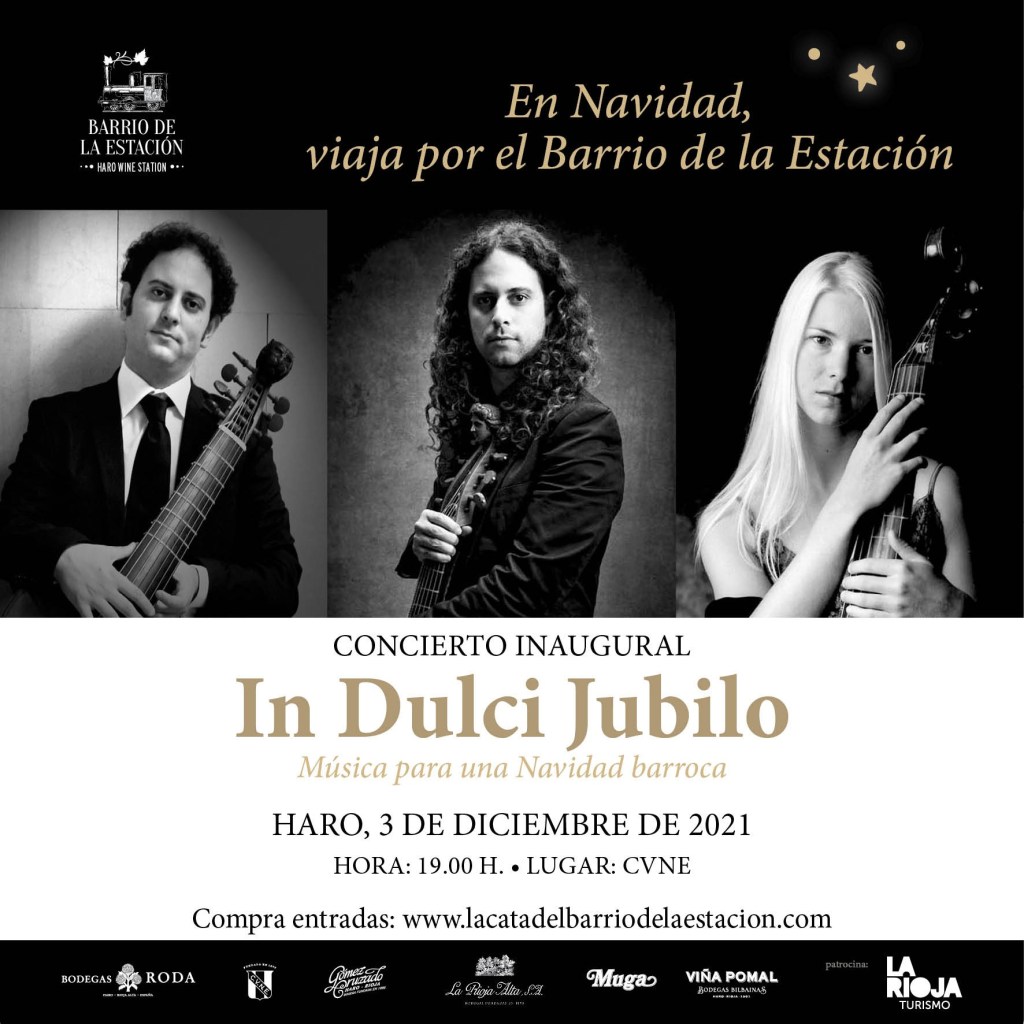 Ese mismo día 3, a las 19:00 en la centenaria bodega CVNE se celebrará un concierto navideño bajo el título “In dulci jubilo” – Música para una Navidad barroca con obras de Juan Sebastián Bach y compositores barrocos españoles a cargo de la Accademia Del Piacere, formación de música antigua que dirige el viologambista de ascendencia sirio-palestina Fahmi Alqhai, y que ha actuado en los mejores escenarios musicales del mundo. Este concierto tendrá un precio de 40€ e incluye un ágape navideño. Las entradas se pueden adquirir a través de la web de La Cata del Barrio de la Estación.