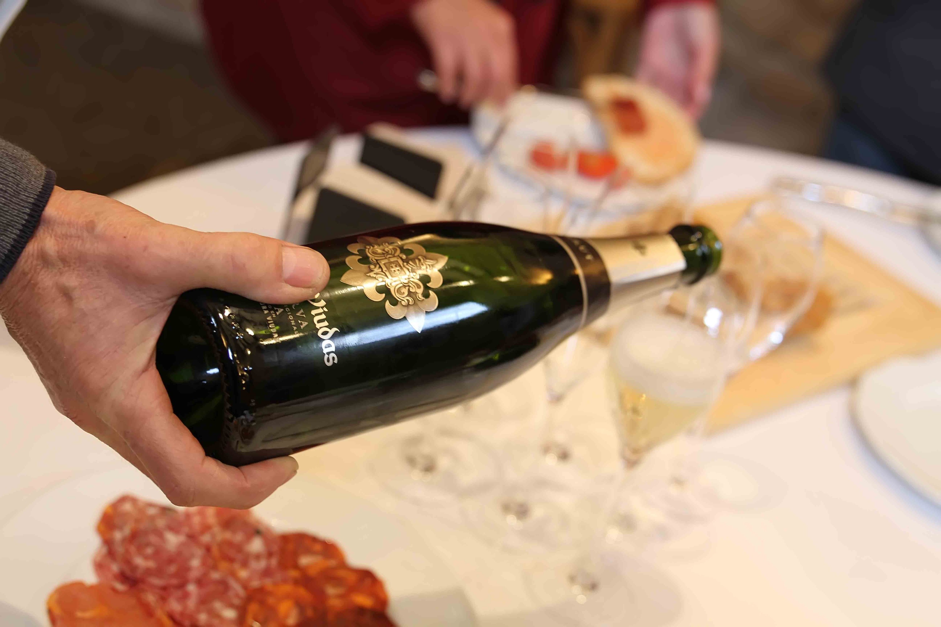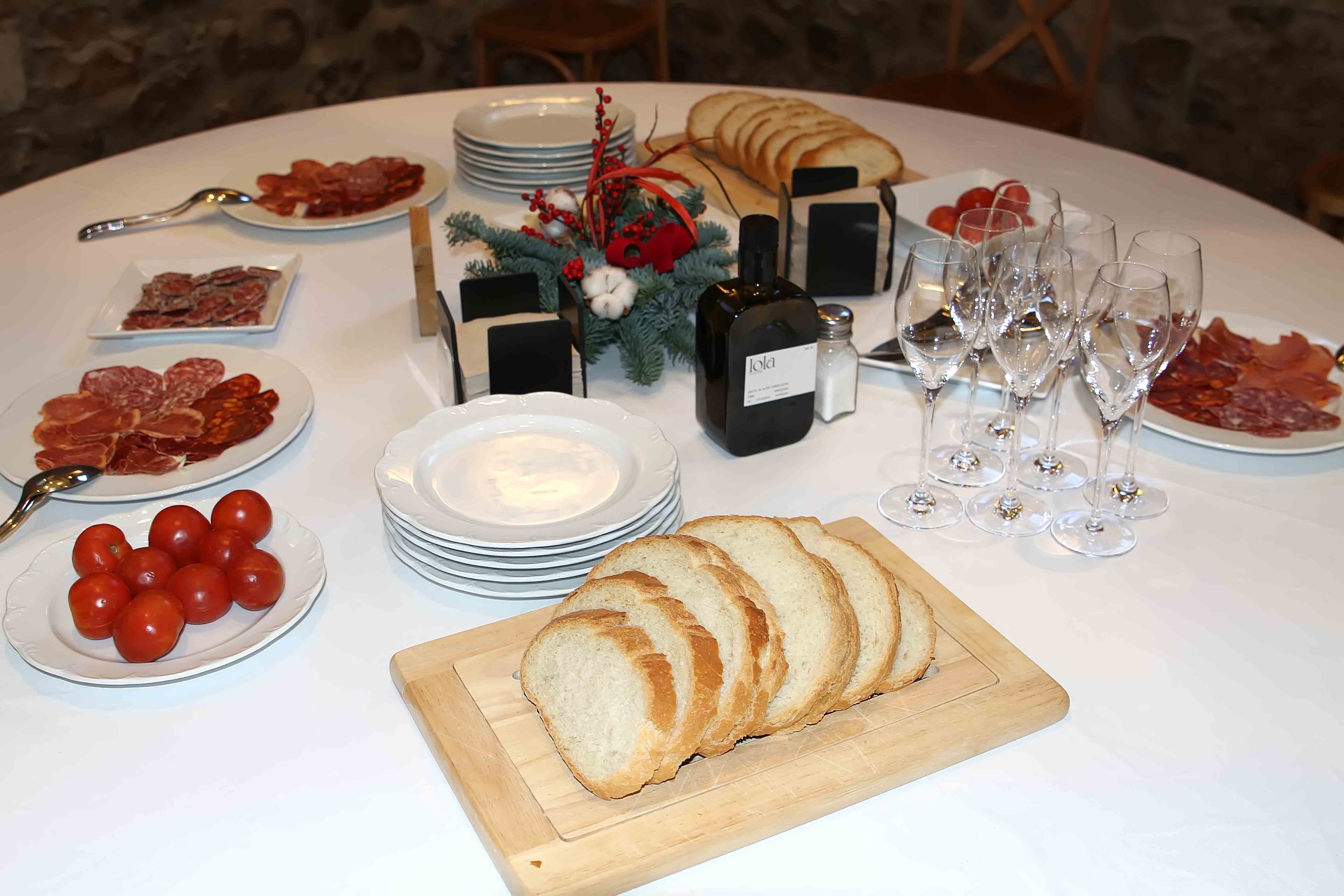A l’interior de la masia, que encara conserva l’estructura de fortalesa, una meravella d’estada, ens esperava un suculent esmorzar típic català, amb pa i tomàquet, embotits i formatge de la comarca, els que vam marinar amb un excel·lent Brut Reserva de Segura Viudas
