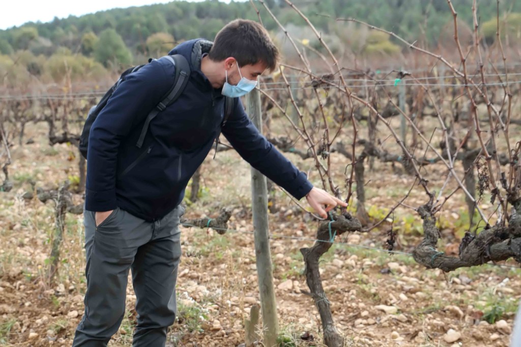 Ens vam dirigir a les vinyes, d’on neixen tots els seus vins i caves, que, aviat, al gener o febrer, començaran a podar i preparar per a la propera collita, i vam conèixer de primera mà el cicle vegetatiu de la vinya i les diferents tècniques d’agricultura sostenible que es duen a terme avui dia, seguim caminant entre vinyes, veient de fons les extraordinàries muntanyes de Montserrat