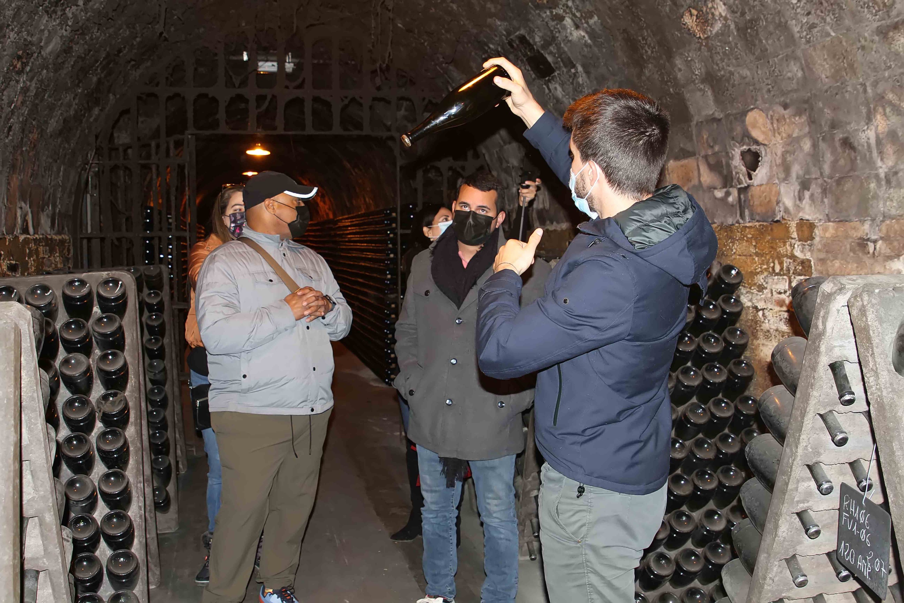 Baixem a l’original i vell i celler que és a uns 15 metres. Sota terra, amb una llum tènue, es respira i se’n palpa l’antiguitat, on hi ha els caves més antics envellint en silenci, una bellesa en què es pot observar la seva llarga història, l’evolució dels processos d’elaboració al llarg del temps fins a arribar als nostres dies. Ens va causar una agradable sorpresa un racó del celler on tancat per un vell reixat negre ple de floridura i teranyines, que li dona un encant personal al lloc, hi ha com un “cementiri d’ampolles de cava” allà es va guardant una partida de les ampolles que s’han anat elaborant durant cada any des de la primera ampolla elaborada i comercialitzada l’any 1957, i que vam veure-la, impressionant poder observar una ampolla de cava de seixanta-quatre anys d’antiguitat