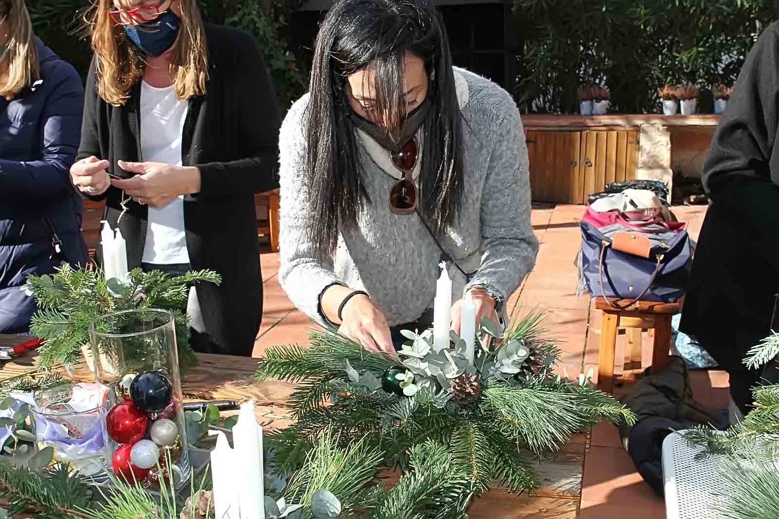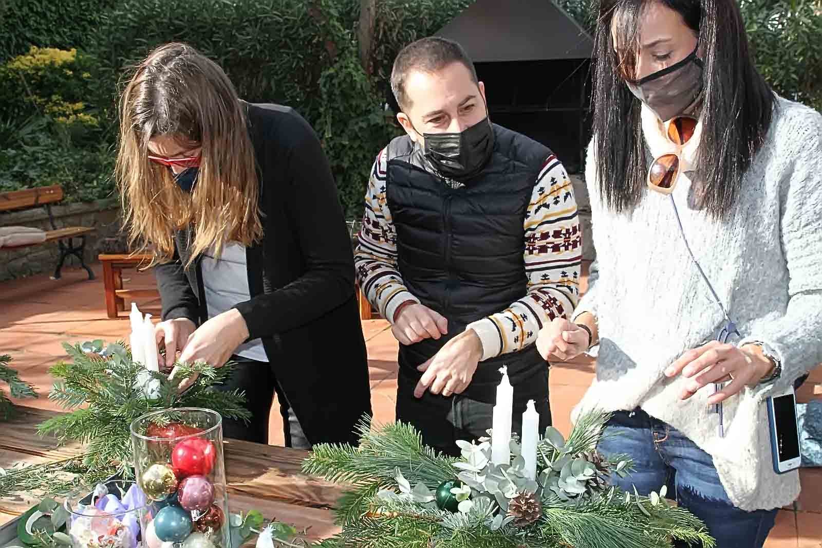 i la gent en participa fent els seus propis centres seguint les indicacions dels experts floristes, i vam poder observar que els encantava l’activitat i gaudien d’aquesta, duent-se, després, cadascú el seu centre de taula nadalenc, a casa seva