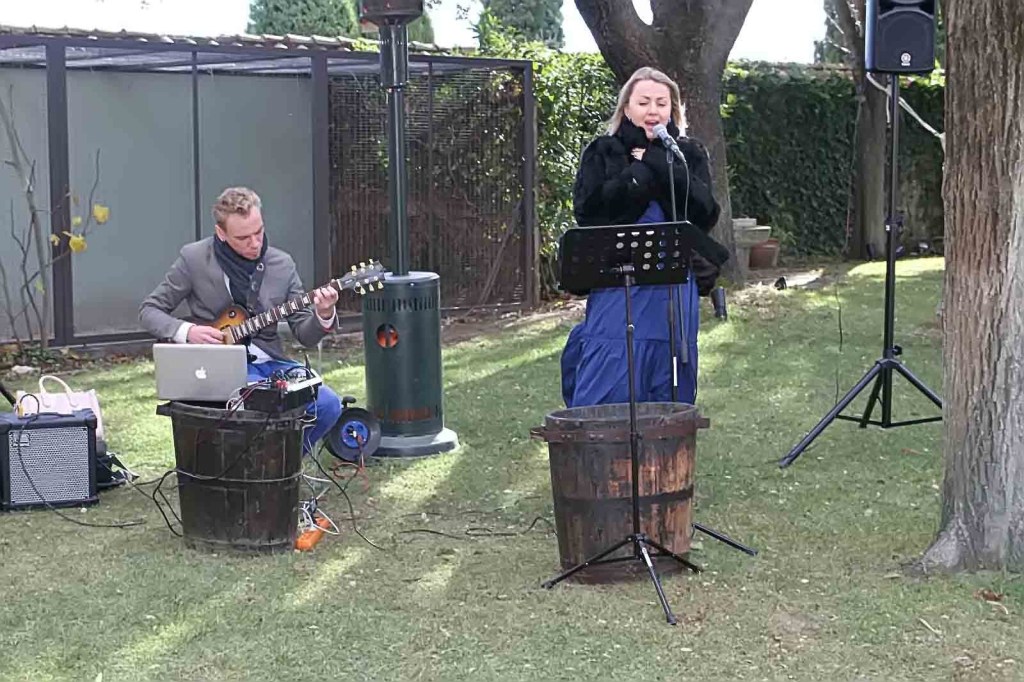 Tot això amenitzat amb música en directe pel duet d’Irinia Novikova (veu) i Gleb Kadashnikof (guitarra) mentre podies anar degustant, d’un mini bufet de petits dolços, del Restaurant “El Gat Blau” de Vilafranca, que estan deliciosos, exquisits, com tot allò que elaboren i assaborint una copa de cava de l’excel·lent ORIOL ROSELL