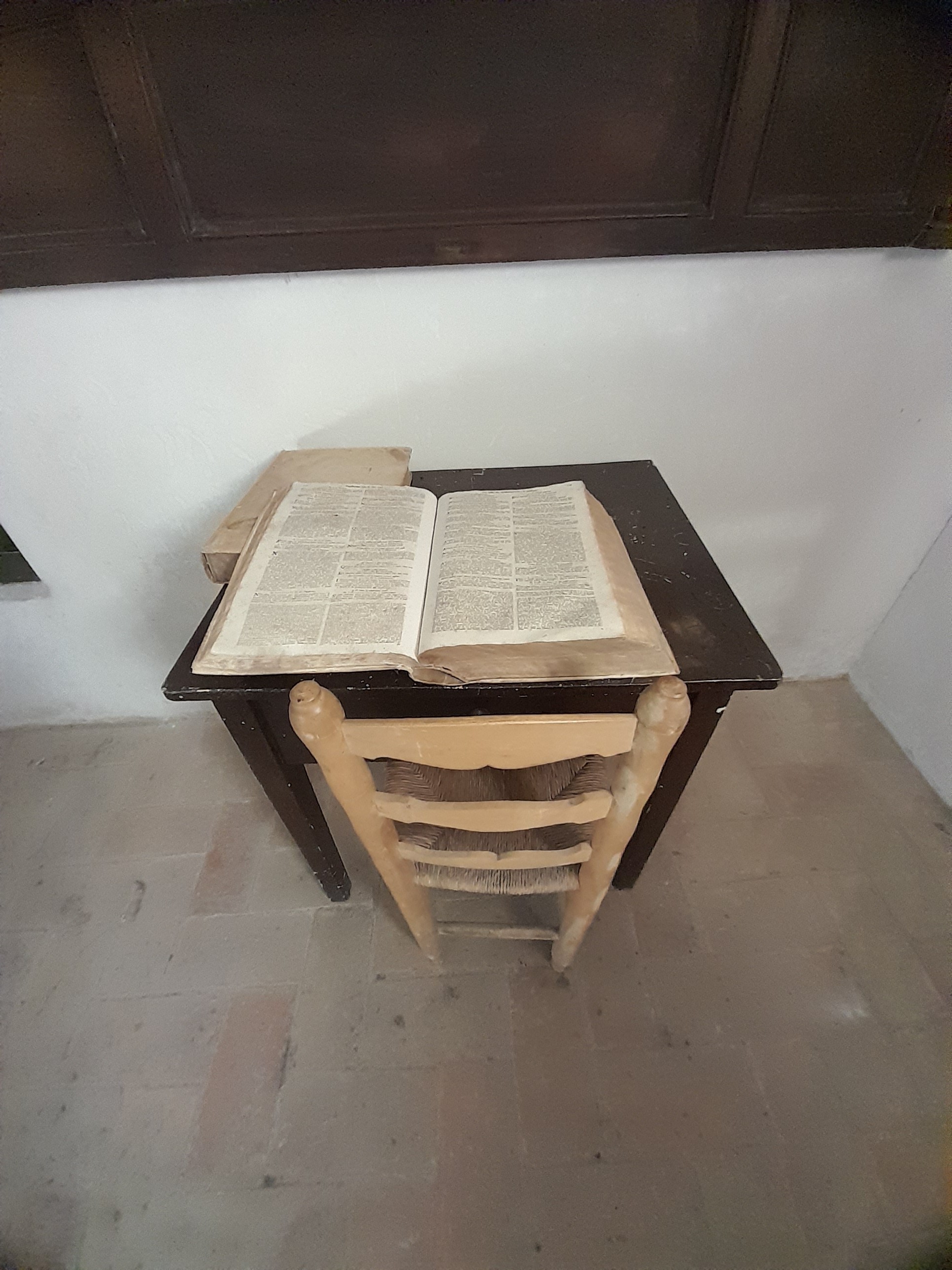 Empezó con una corta e ilustrativa explicación sobre el vino y la viticultura y los factores del mismo, para comprender un poco más el mundo del vino, para posteriormente dirigirnos a la Ermita, el primer edificio que se edificó en Viladellops, ya que este uno más de los micropueblos que se formaron ya que el pueblo inicialmente era propiedad de la iglesia, en el exterior aún se puede observar el altar original de piedra, que fue encontrado, por casualidad en la viña vieja, el interior es asombroso, pensar que estas en un lugar de 1000 años de existencia, en el que todavía se conserva intacta la habitación del cura que vivía en la capilla tal y cual era en su época, más tarde la iglesia decidió regalar el pueblo de Viladellops a los templarios, cuyo escudo, la cruz, representativa de los mismos, aún se percibe en la entrada de la iglesia, inaudito.