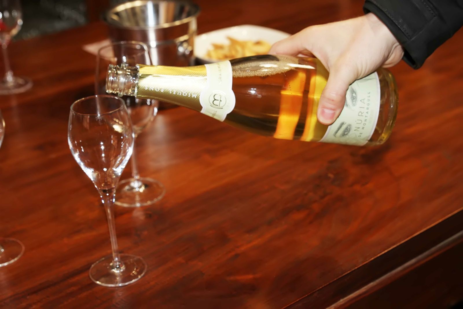 Finalment, realitzem un tast d’uns excel·lents caves, de gran qualitat i un nivell suprem, obrim el tast amb un Cava Núria Rosé ,cava elaborat per el métode tradicional de segona fermentació en ampolla. Núria rosé és un cava pensat per degustar-lo en qualsevol moment, elaborat amb Trepat, varietat autòctona del cava. Es caracteritza per una corona harmònica i una bombolla petita, on destaquen els d’aromes varietals de fruites vermelles (grosella, maduixot) combinades amb les de criança (brioix). En boca és elegant i la seva bombolla forma una mousse cremosa, on apareixen la simfonia d’aromes de fruites vermelles i la brioxeria per tal d’arrodonir aquest cava, amb un final de sensacions llarg i agradable. Un cava modern ideal per seduir-te en qualsevol moment.
