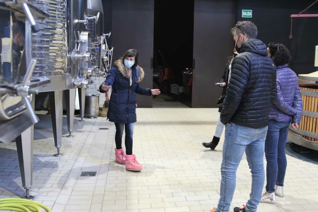 Posteriormente nos dirigimos a la zona de elaboración de los vinos una vez hecha la vendimia, donde se realiza todo el proceso en tanques de acero inoxidable de diferentes tamaños, esta sala hasta hace poco funcionaba con un generador, que han eliminado, haciendo una inversión y apostando por la energía solar fotovoltaica (placas solares) que han instalado este verano, de aquí pasamos a un pequeño laboratorio, que nos asombró, porque en ninguna visita, de las muchas realizadas, no habíamos visto ninguno, y es curioso y nos gustó conocer, pues también forma parte y muy importante de la elaboración del vino.