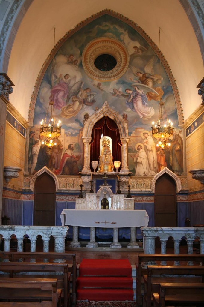 Posteriorment ens dirigim cap a una preciosa i bella capella que va fer construir el propietari en honor a la seva dona i que data del segle XX, la Capella de la Merce d’estil neogòtic, construïda el 1927, al seu interior es pot contemplar la bellesa un gran mural de tela, un mural amb una insòlita història, de quan van arribar els republicans a Can Macià convertint la capella a la seva caserna, desvalisant tot el que van trobar-hi, a excepció del mural, que, per fortuna, un veí de la família es va afanyar a rescatar-lo i guardar-lo fins que va finalitzar la guerra i es va reconstruir de nou la capella en honor a la Mare de Déu de la Mercè, d’aquí el seu nom