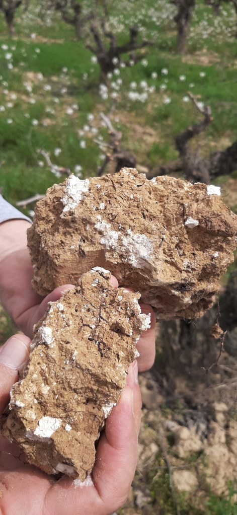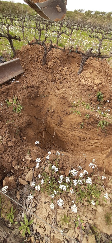 “Per a definir el terroir és molt important conèixer els quatre elements que el formen: el relleu, la geologia, el clima i la biodiversitat”, assegura Joaquín Cámara, director executiu de Diagnoterra i encarregat del projecte. A principis d’abril, Juvé & Camps va iniciar el projecte d’estudi de sòls de la finca d‘Espiells obrint 76 rases, d’entre 1,5 i 2 metres de profunditat cadascuna, en funció de la profunditat efectiva de les arrels; és a dir, fins on arriba el 80% del sistema radicular.