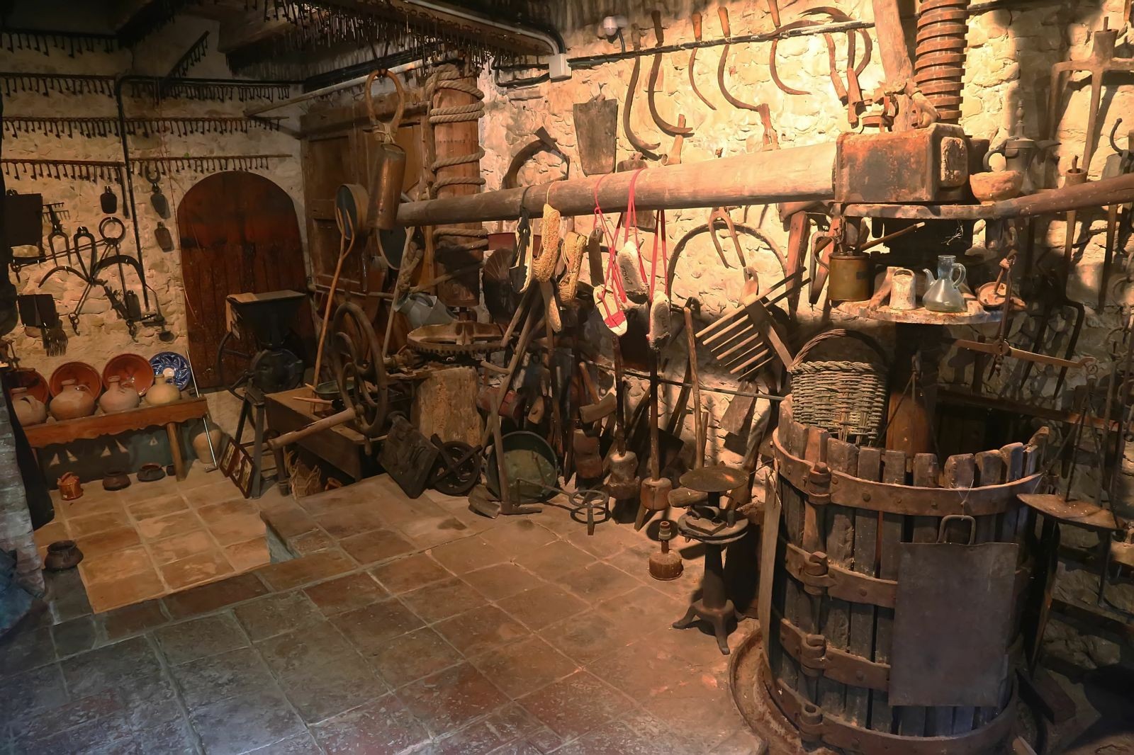 A continuació, amb el Ramon, que va ser el nostre guia en el recorregut de la visita, persona entregada i entusiasta, vam començar per un curiós museu amb una col·lecció d’utensilis relacionats amb la vinya i el vi, utilitzats en els darrers segles. La col·lecció on hi ha eines de cultiu, permeten fer un recorregut per la història del darrer segle en la producció del vi, una infinitat de materials referents amb aquest món, un museu que ha creat poc a posc i ha estat el fundador el pare del Marcel, recollint materials i utensilis de la seva pròpia finca, així com d’altres, un lloc ple de solera i història amb detalls que expliquen per què i el sentit de la finca i la seva dedicació i tradició per aquest món, com unes bombes vellíssimes i remotes. Un lloc per perdre’s, amb autèntiques relíquies agrícoles per entendre molt millor el present i acollir una filosofia vitivinícola molt més respectuosa.