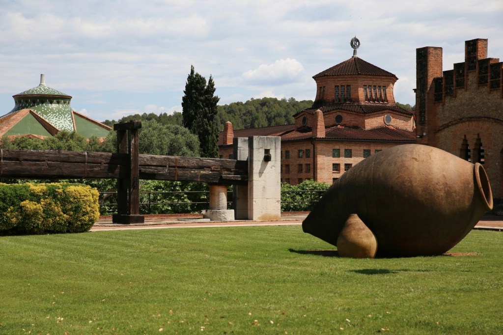 ISeguim amb una passejada per l’exterior per anar veient i admirant els edificis modernistes que va construir l’arquitecte Josep Puig i Cadafalch i els jardins que envolten els mateixos, que exalcen encara més l’entorn. Així ,arribem fins a una zona, des de la qual hi ha una molt bona perspectiva de les Muntanyes de Montserrat, és la zona dels cellers, on es va començar a elaborar el cava des de principis del segle XX, començant pel Celler Gran, una altra de les obres de l’arquitecte Josep Puig i Cadafalch, que es va construir entre el 1900 i el 1915. El Celler Gran és un símbol de l’esperit emprenedor i innovador de la família Codorniu, que van voler fer un edifici que fos esplèndid, magnífic, doncs, per a el Manuel Raventós, era molt important vincular Codorniu amb el principal corrent artístic de l’època, el modernisme, i per això, va contractar uns dels millors arquitectes i contracte al Josep Puig i Cadafalch, totes les obres de Puig i Cadafalch a Codorniu, tres principalment, que us hem indicat anteriorment, van ser declarats “Monument Històric Artístic Nacional” el 1976, per la qual cosa són monuments protegits.Seguim amb una passejada per l’exterior per anar veient i admirant els edificis modernistes que va construir l’arquitecte Josep Puig i Cadafalch i els jardins que envolten els mateixos, que exalcen encara més l’entorn. Així ,arribem fins a una zona, des de la qual hi ha una molt bona perspectiva de les Muntanyes de Montserrat, és la zona dels cellers, on es va començar a elaborar el cava des de principis del segle XX, començant pel Celler Gran, una altra de les obres de l’arquitecte Josep Puig i Cadafalch, que es va construir entre el 1900 i el 1915. El Celler Gran és un símbol de l’esperit emprenedor i innovador de la família Codorniu, que van voler fer un edifici que fos esplèndid, magnífic, doncs, per a el Manuel Raventós, era molt important vincular Codorniu amb el principal corrent artístic de l’època, el modernisme, i per això, va contractar uns dels millors arquitectes i contracte al Josep Puig i Cadafalch, totes les obres de Puig i Cadafalch a Codorniu, tres principalment, que us hem indicat anteriorment, van ser declarats “Monument Històric Artístic Nacional” el 1976, per la qual cosa són monuments protegits.