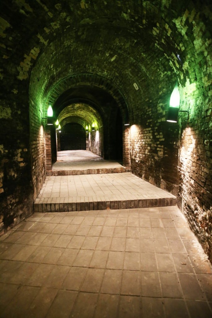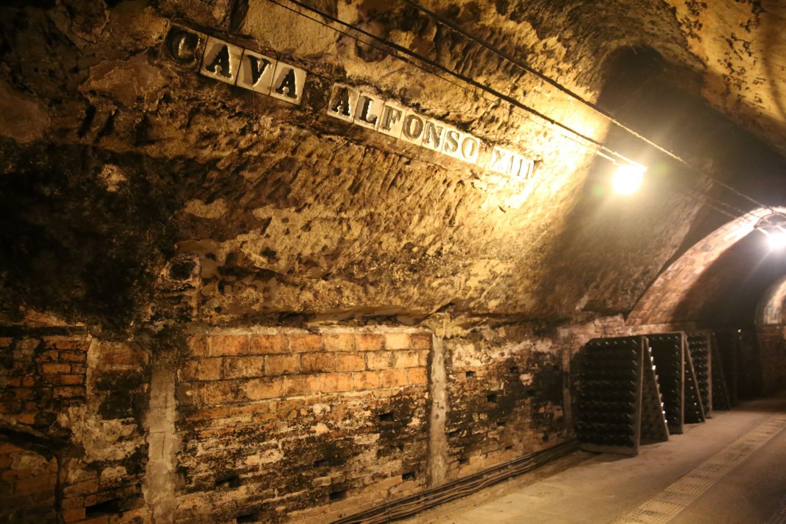 Posteriorment, descendim a les caves subterrànies, però primer franquegem una antiga sala d’electricitat, que es va fer servir a la postguerra, quan hi havia moltes restriccions, en cas d’emergències, interessant i curiosa de veure. El vell celler està a 20 mts sota terra, al nivell -4, les galeries subterrànies més antigues de Codorniu, construïdes a finals del segle XIX, cada cava té el seu nom com el carrer Rei Alfonso XIII, que se li va posar aquest nom perquè el Rei, el 1904 va visitar les caves Codorniu. És increïble, es com una ciutat subterrània, amb els carrers, els noms i els números.