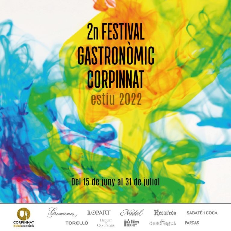 Este año el cartel del segundo Festival Gastronómico CORPINNAT es obra de tres estudiantes de la Escuela de Arte Arsenal de Vilafranca del Penedès, a quienes encargamos el proyecto con el objetivo de apoyar a los jóvenes talentos artísticos de nuestro territorio. El cartel, realizado a partir de la técnica fotográfica, es un conjunto de fluidos de diferentes colores que representan la tierra, el agua y el viñedo y que se mezclan entre ellos sin renunciar a su propia personalidad, como lo hacen todos y cada uno de las bodegas que hoy integran la marca CORPINNAT. La mezcla de colores expresa también el optimismo por las ganas de volver a salir, relacionarnos y mezclarnos, emociones que hemos tenido que reprimir por culpa de la pandemia.