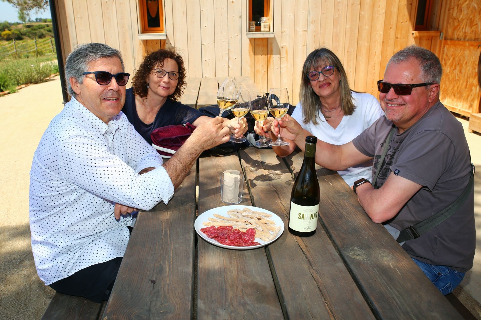 Un moment agradable a la granja assaborint un gran vi, juntament amb la nostra guia i dues parelles que van realitzar aquesta gran Experiència Premium ,propera parada