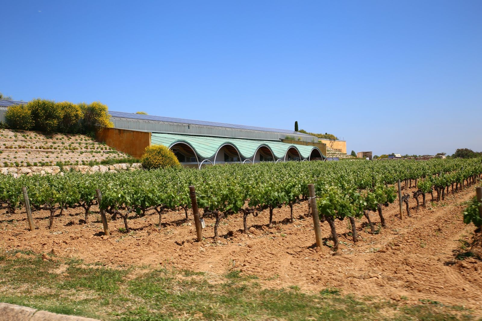 A la recepció de Gramona ens va atendre Mireia que seria la nostra guia durant aquesta fascinant visita Que comencem desplaçant-nos cap al El Celler Batlle, construït l’any 2001, és l’aposta de la família pel respecte al paisatge i a l’ús d’energies renovables. Està ubicat al bell mig de les vinyes de Gramona, i tot el que sobresurt d’aquest edifici és un terç del total