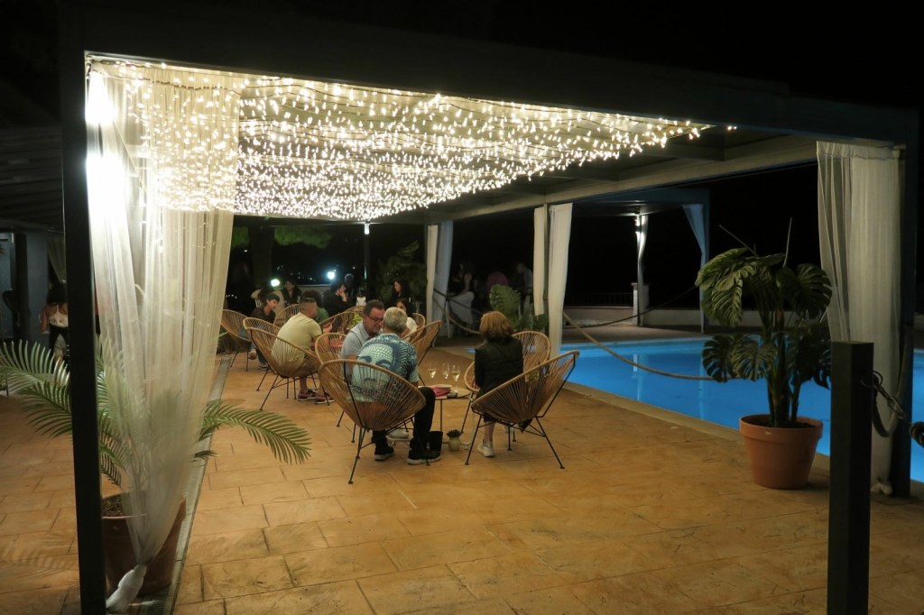 en un espai idíl·lic, on un racó de La Masia que resulta molt encantador per a les celebracions i esdeveniments El Chill Out al costat de la piscina. Amb una decoració exquisida i acollidora, és un lloc ideal per relaxar-se, prendre una copa i xerrar