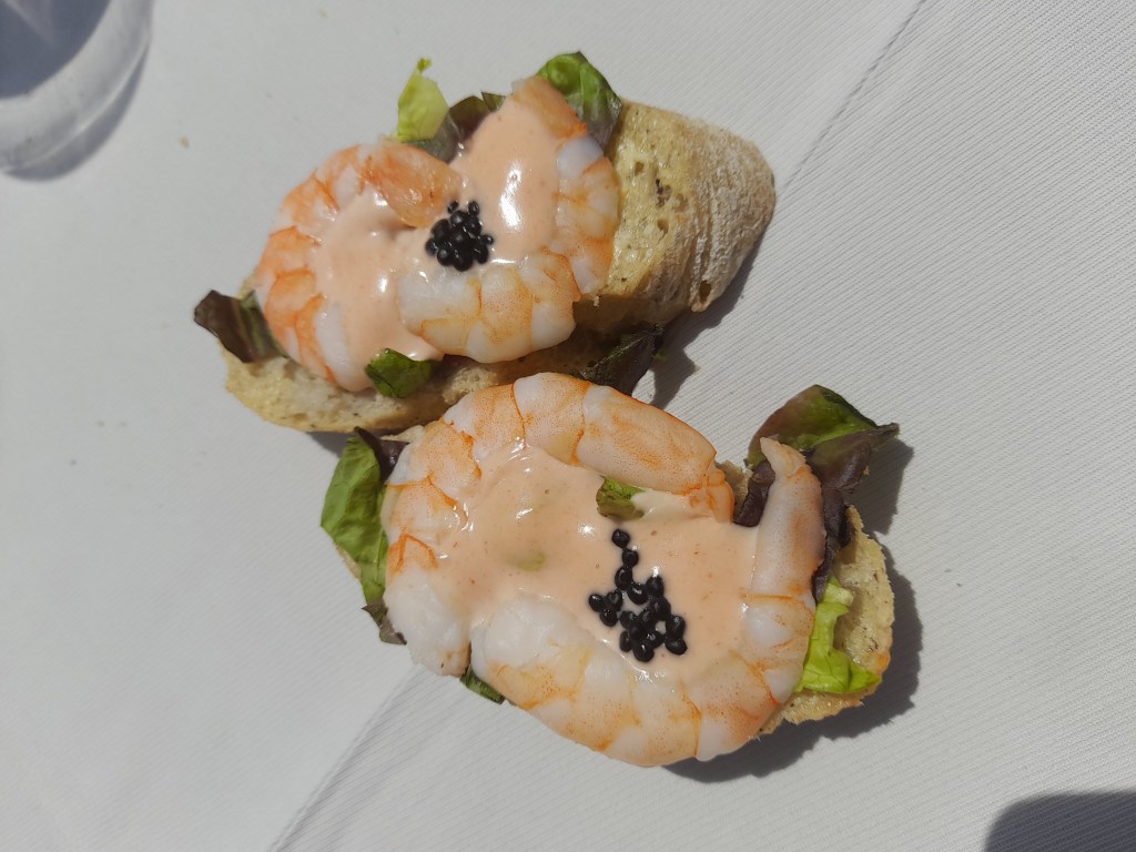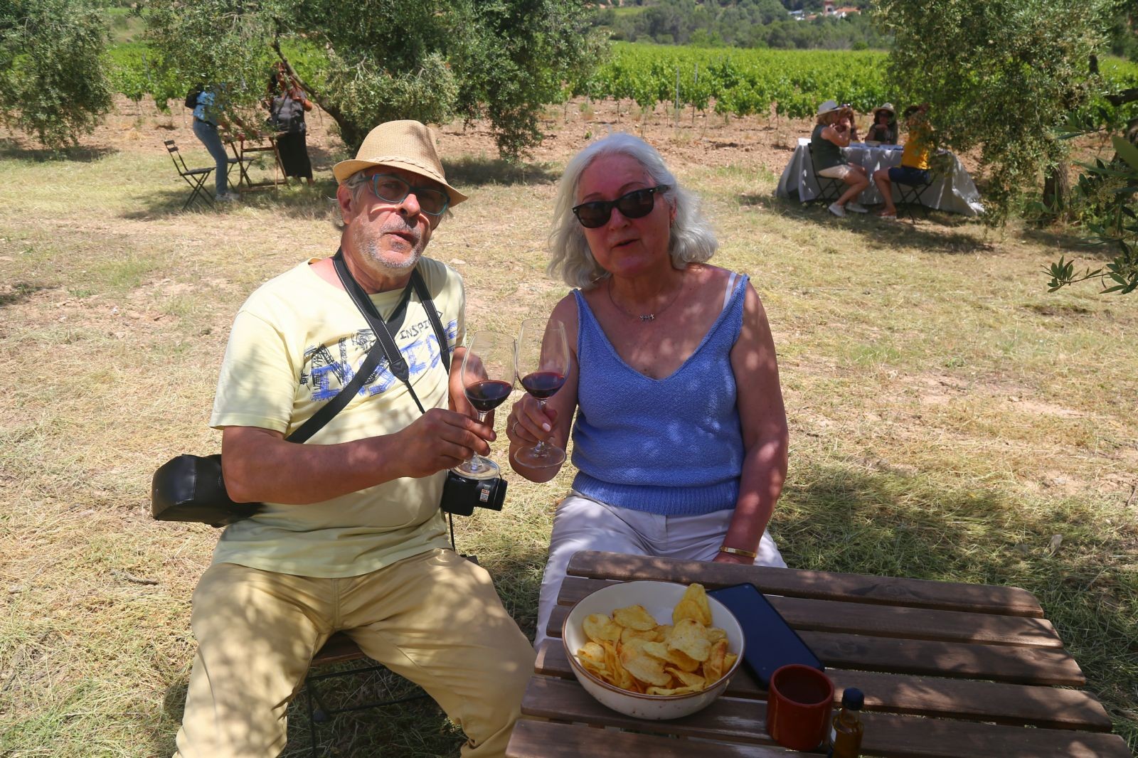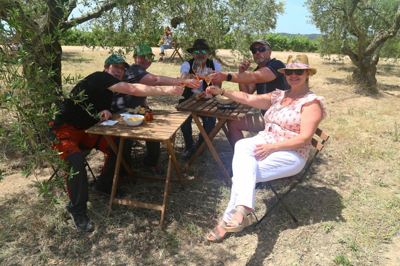 Aquí, al costat de l´Església de Santa Creu de Creixà, en una zona plena d´oliveres, havien col·locades unes taules i cadires de fusta, sota les oliveres i música de fons, vam acabar amb un gran aperitiu i amb els esplèndids vins o caves Sumarroca