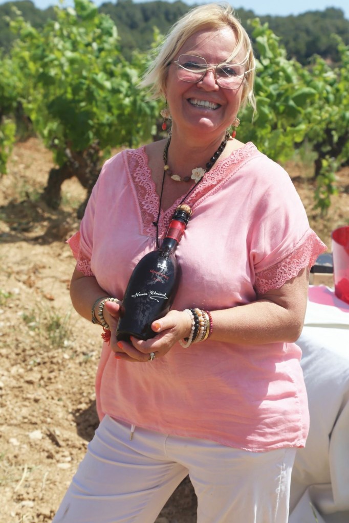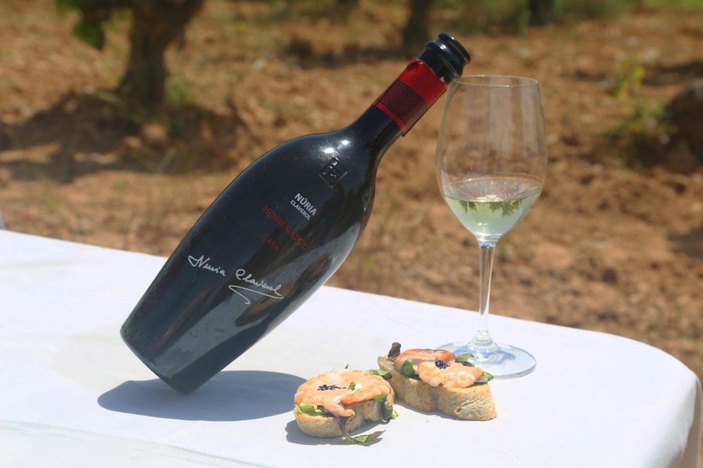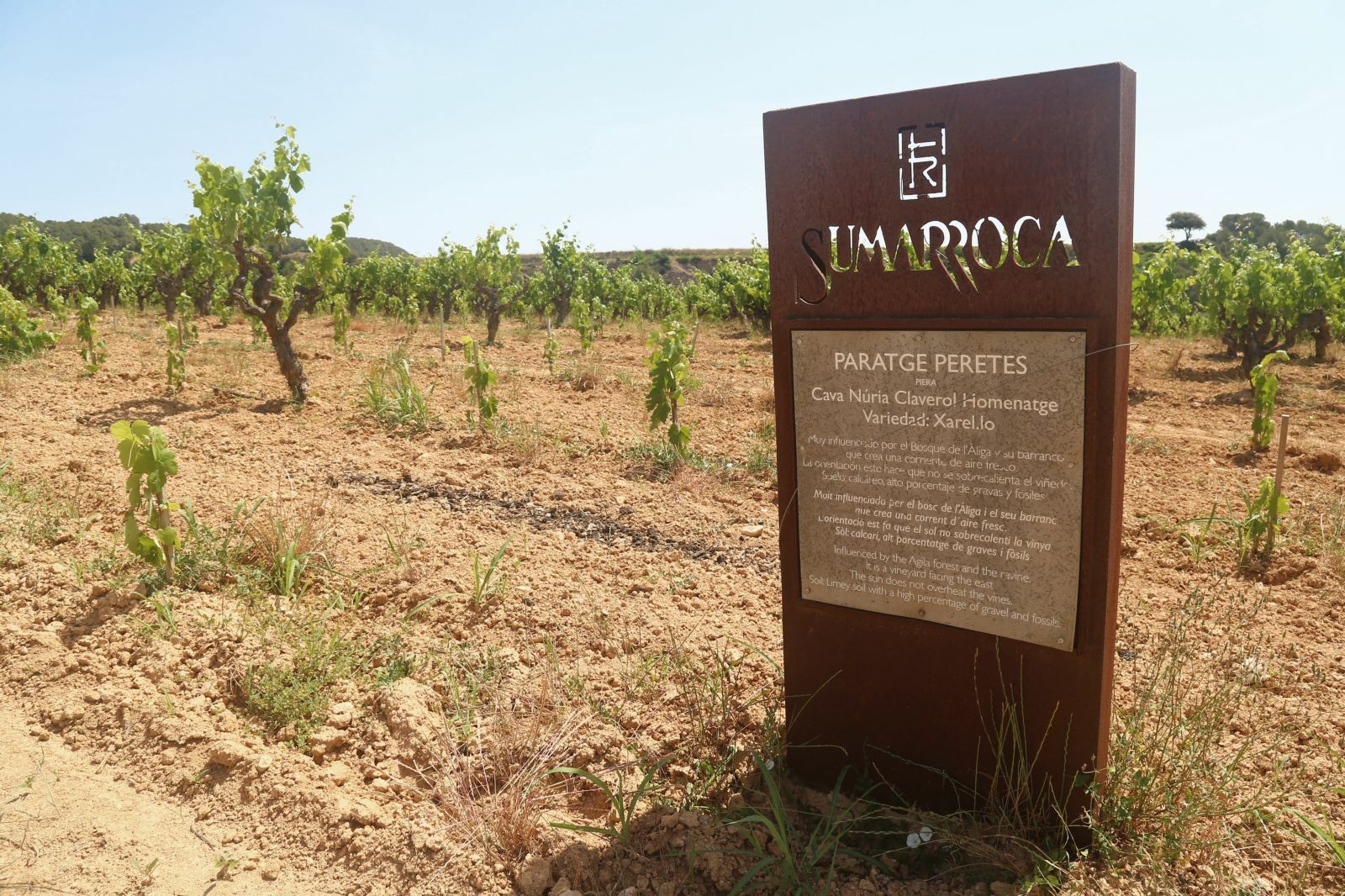 Seguim passejant entre vinyes, un privilegi estar en aquell paratge tan bell de vinyes verdes i plenes de raïms brotant. Així vam arribar a la segona parcel·la també plantada de varietat Xarel.lo i de la que elaboren el “Núria Claverol Homenatge” que vam tenir el gran plaer de tastar, ia la mateixa vinya, tot un luxe. A part de la informació de les característiques del mateix, ja que la Mercèés sommelir,i de les bones, ens comenta que, aquest cava és molt especial, porta el nom, de la seva tieta Núria, que és la dona del fundador de la celler, Carles Sumarroca, i és la dedicatòria dels tres fills a la seva mare i l’amor per la terra que és una constant a la seva vida.