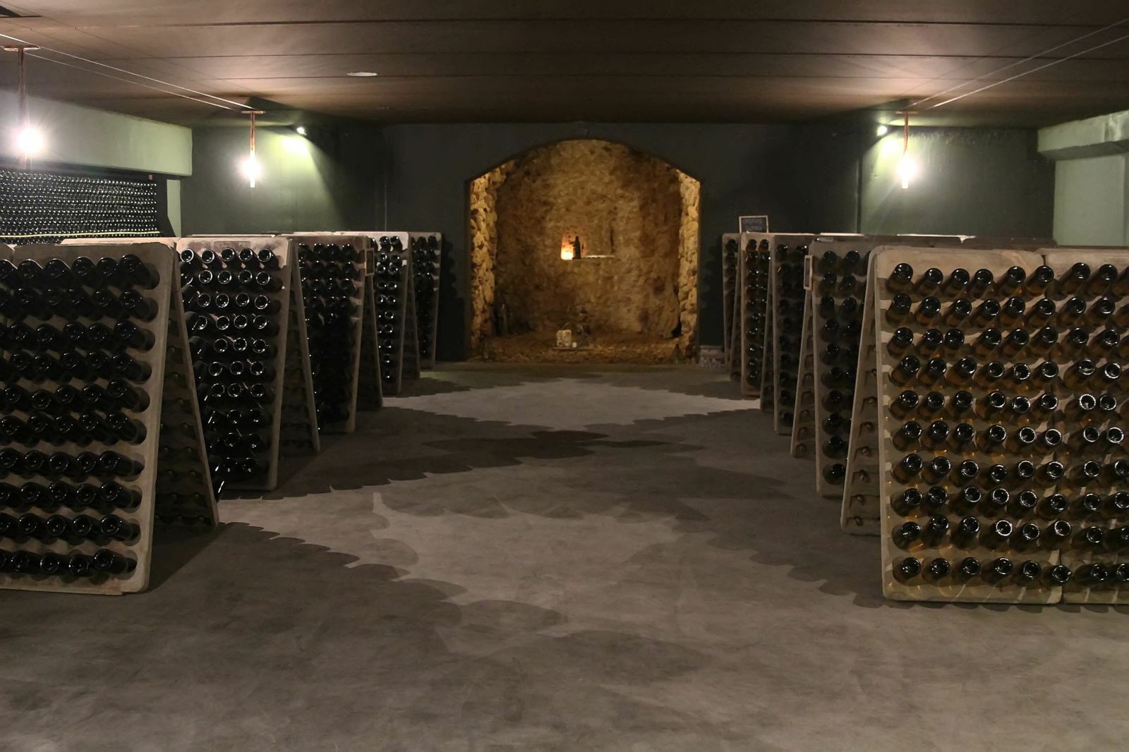 En una altra planta hi ha una petita sala, com a exposició de com es treballava antany, abans d’haver-hi les màquines actuals de treball i que faciliten i molt el mateix, una vegada veus la que usaven antigament com la de fer el desgorxament, l’envasadora, tot manual i artesanal, així com els puprites on es col·locaven les ampolles per el octau de volta i els llums que feien servir per veure’ls, que amb un pal fan córrer fins al lloc que necessiten la mateixa. En aquesta , al fons , hi ha com una cova i és que han deixat un buit, de com era quan van començar a excavar i que van deixar sense cobrir i on s’observa la pedra i roca, tal com era inicialment