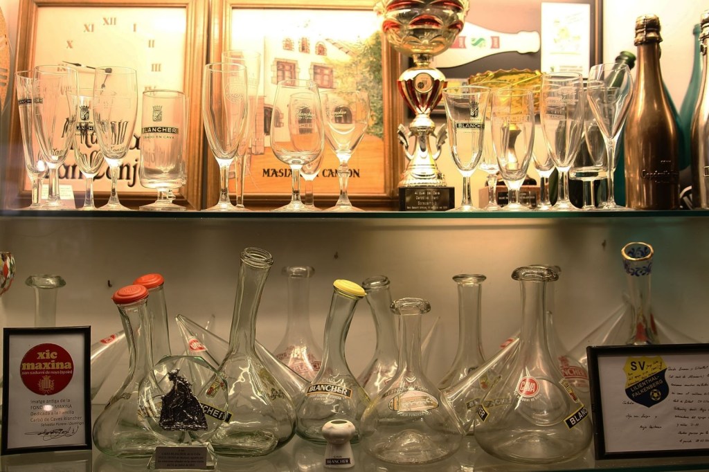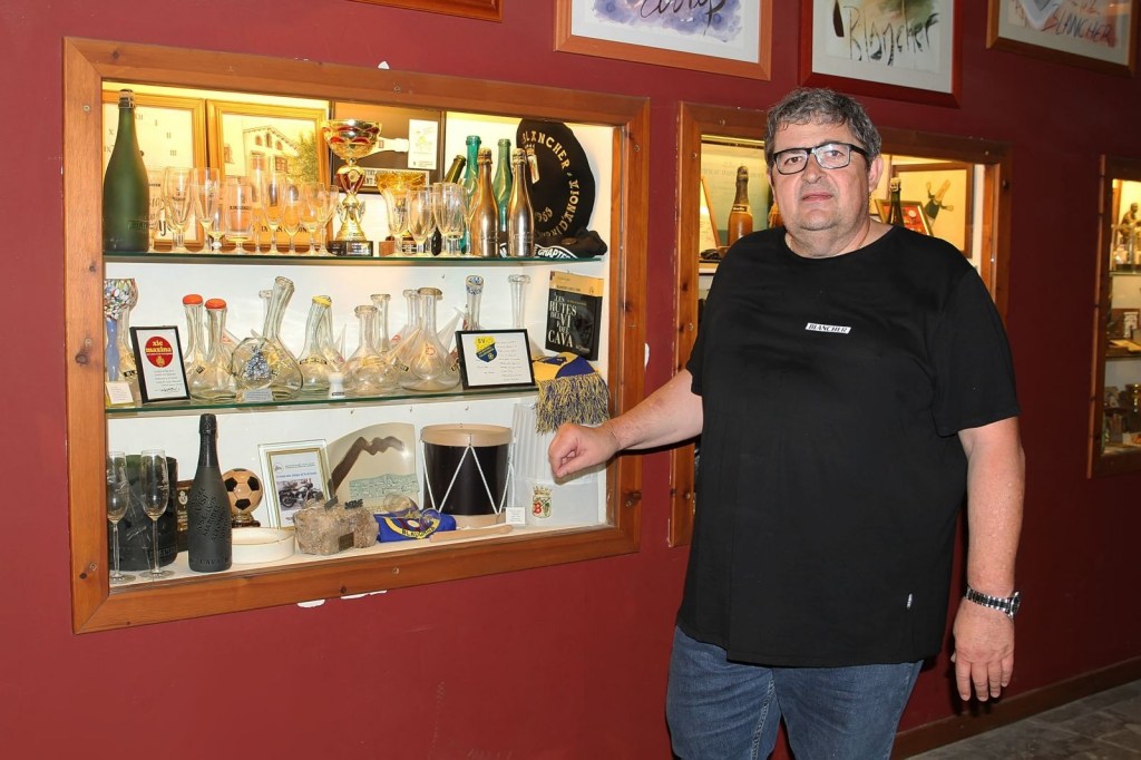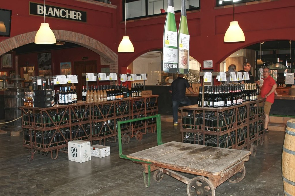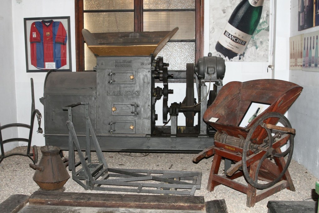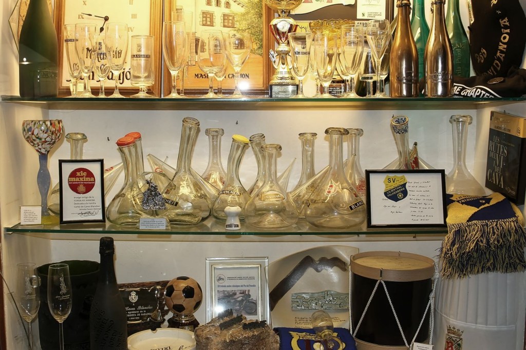 Blancher és un celler familiar, de tradició arrelada a la vila. En un antic edifici es conjuga el celler, amb un interessant museu d’objectes relacionats amb el producte estrella de la comarca, el cava, dividit en tres sales, el Josep, un home cordial, simpàtic i molt atent amb nosaltres, que ens va fer sentir molt bé ia gust en tot moment, ens va anar explicant cadascun dels records allí guardats, que són moltíssims i en diferents vitrines, i que mentre ens ensenyava ens anava transmetent i contagiant el seu entusiasme i satisfacció amb tota la varietats d’efectes i pertinences que s’hi atresoren, com,entre moltes altres, una peculiar col·lecció de copes Blancher, des de la primera que van treure fins a la que utilitzen avui dia, una infinitat de trofeus i regals d’agraïment a al celler per les seves enormes col·laboracions, com a fotos emblemàtiques de la família i de famosos que han passat per allà a comprar l’espectacular cava Blancher, com, per nomenar-ne un, l’inigualable Maradona, sensasional, un museu digne de veure i delectar-se amb tot el que hi ha per veure i captivar, així com la zona dedicada a l’antiga i vella maquinària exposada, màquines que van ser utilitzades al seu dia i que han quedat obsoletes, però que són mereixedores de ser exposades, per sort nostra, poder admirar-les i comprendre l’esforç que portava i porta l’elaboració d’un bon vi o cava.