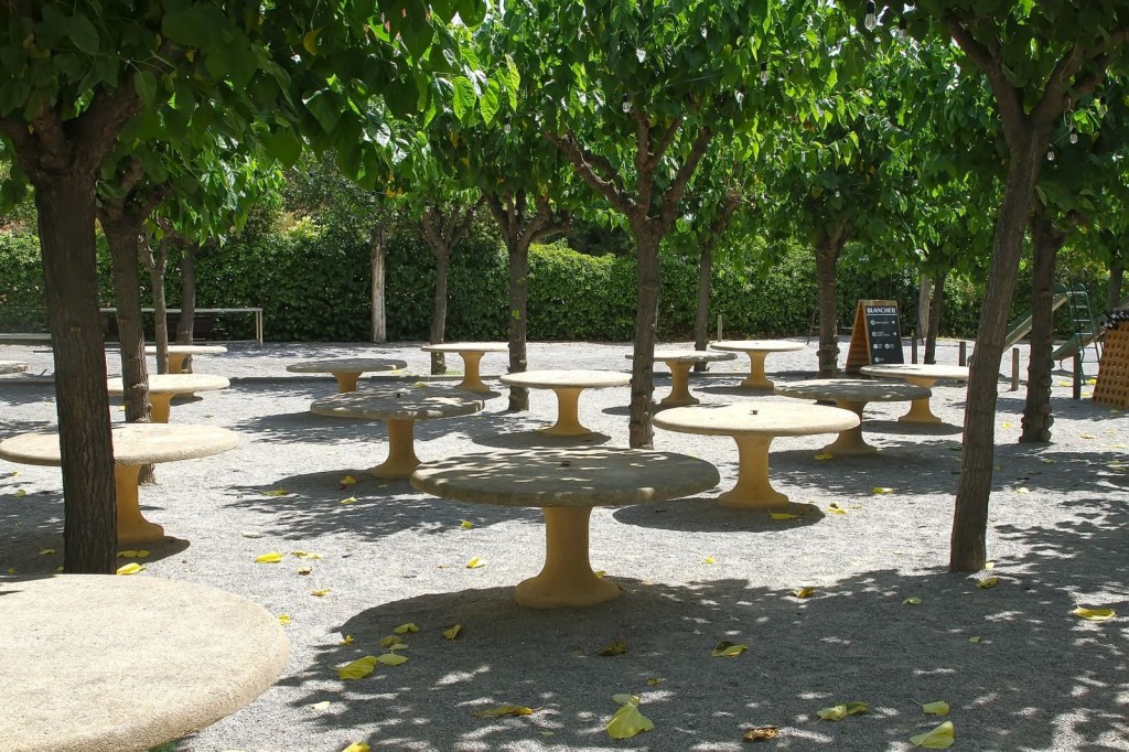 ja que a Blancher tens disposades les graelles i brasa de vinya per fer carn, t’ho deixen preparat ells, ja que disposen d’un forn i unes graelles on van fent brases a mesura que tu les vas necessitant, una barbacoa de luxe. Ja no tens excusa, si vols fer una barbacoa, tranquil·lament amb la família o amics, Blancher t’ho posa fàcil, molt molt fàcil. Com a curiositat, dir-vos que ja van començar a tenir zona de barbacoa i fer barbacoes des del 1962. Com hem comentat, pioners en enoturisme.