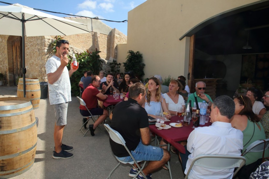 De les vinyes i després de conèixer de primera mà la cultura del vi, ens dirigim a l’esmorzar que havia disposat en una part de la finca, adientment preparat amb l’entorn, que consistia és pa amb tomàquet, embotits de proximitat ( fuet, botifarra blanca, botifarra negra) tres tipus de formatges i coca, i que amb què comencem, per a sorpresa nostra, amb most, un most d’elaboració propia, que estava boníssim