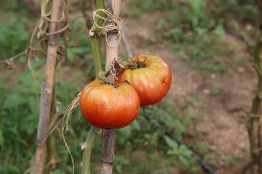 Mentre ens va explicant el projecte i l’elaboració de vins, escumosos i olis que produeixen ells mateixos, de les vinyes i camps que tenen, anem recorrent i veient el lloc. Anem a l’interior de la masia amb la seva història i que encara guarda el seu encant d’antany, on realitzen diversos esdeveniments, després entrada al celler per explicació del procés del vi, Un passeig per les vinyes per comentar in situ les varietats i les pretensions de l’activitat agrícola., així com ens arribeu-vos fins a l’hort on hi ha plantades infinitat de verdures i ens crida l’atenció un tipus de tomàquet que el Francesc ens diu que és el «Mandó de Collserola», una varietat tradicional local que es caracteritza principalment per el seu fruit gran, ple, saborós i que el pots tastar aquí a la Vinoteca de Can Calopa, marinat amb un exclusiu i exquisit vi de l’Olivera.