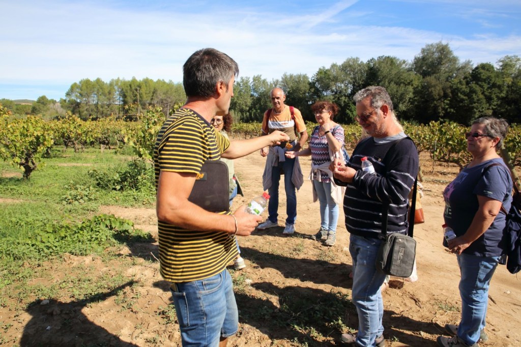 Des d’aquesta emblemàtica sala, ens dirigim a unes vinyes on acompanyats per l’Albert, viticultor, que un cop a la vinya, ens va fer una petita introducció del que és el Penedès en general i una gran il·lustració amb tot allò relacionat amb la viticultura, i el que comporta, des de la plantació fins a la recollida i poda de la mateixa, a més de molts altres temes, una lliçó de la vinya il·lustrativa i amena, ja que ens ho va explicar amb l’entusiasme que ell ho viu i això transmet i se’t fa més entretingut.