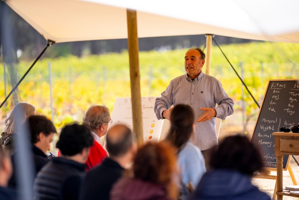 Julián Arroyo, formador y asesor de agricultura biodinámica, junto con Sergio Ávila, fueron los encargados de guiar la masterclass con la que se inició la jornada. “La base de la biodinámica es que el suelo esté vivo”, explicaba Julio, y continuaba “es una forma de organizar la vida dentro de la viña”. Así, esta forma de agricultura, fundada por Rudolf Steiner a principios del siglo XX, es un enfoque holístico de la agricultura donde la viña, en este caso, es considerada como un organismo donde plantas, animales y seres humanos están conjuntamente integrados.