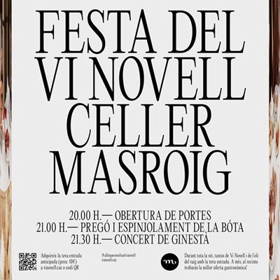 El Celler Masroig recupera la seva tradicional Festa del Vi Novell el pròxim 12 de novembre. Els seguidors del Vi Novell del Celler Masroig tornaran a gaudir de l’espinjolament de la bota, enguany de la mà del grup Ginestà, que seran els padrins d’aquesta edició.