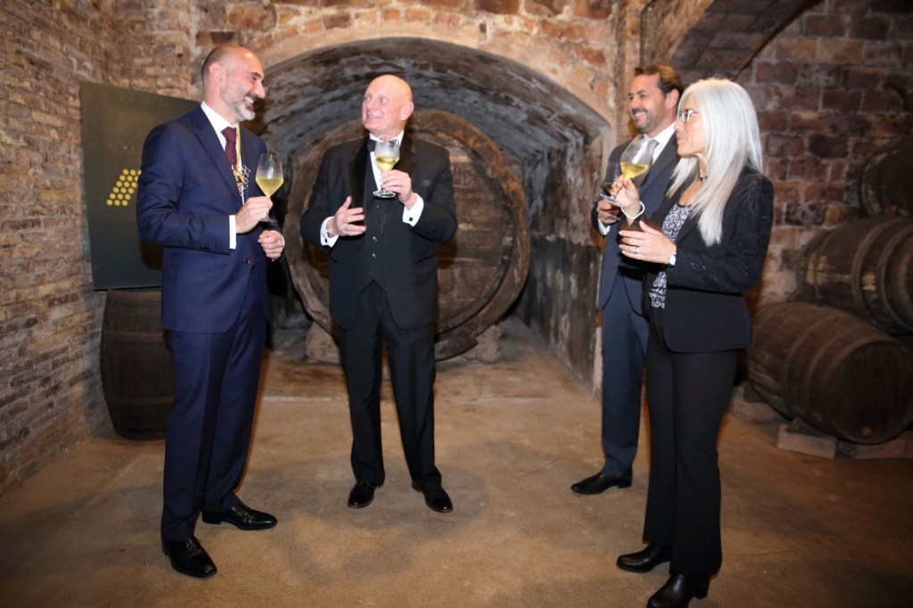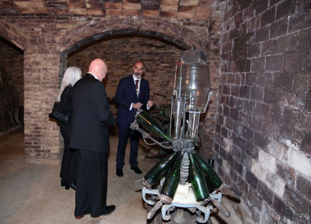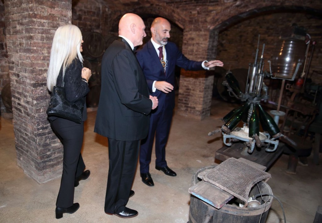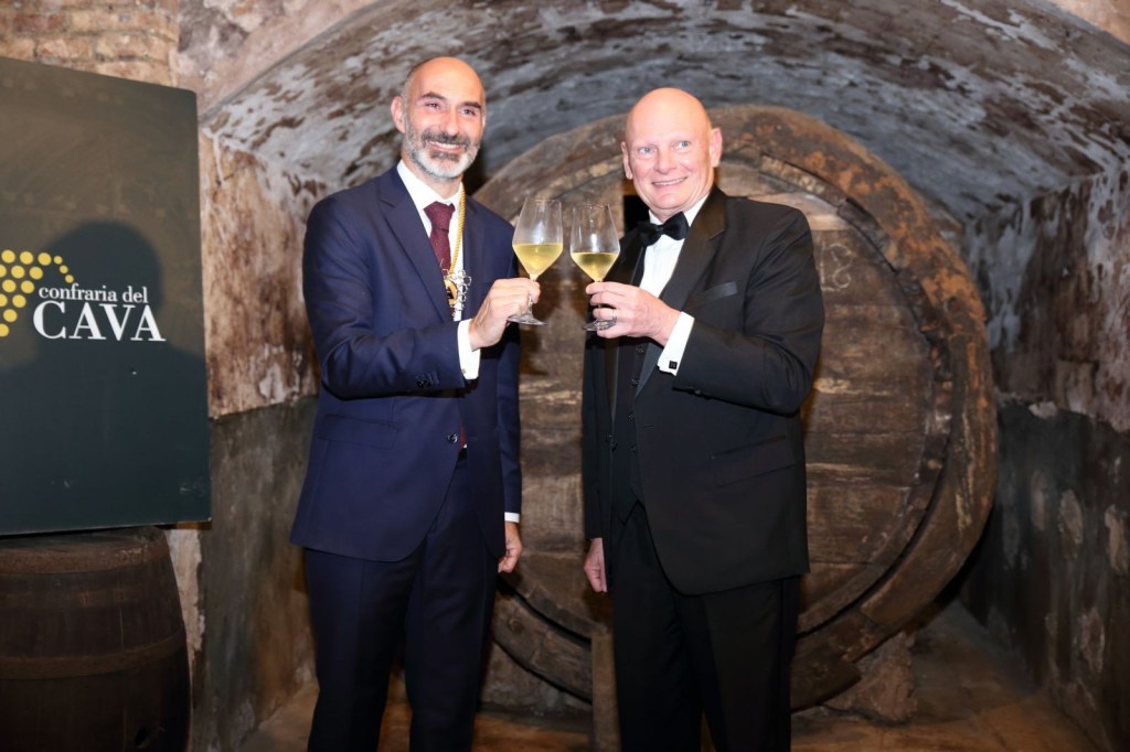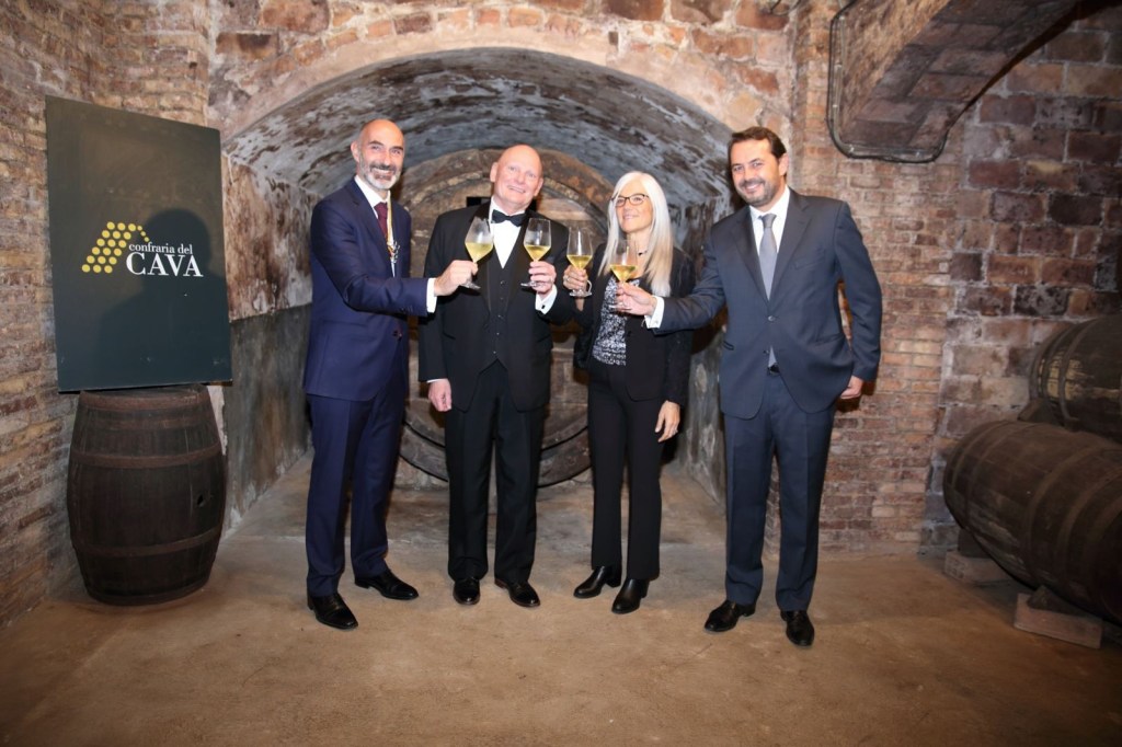 El Sr Eduard Sanfeliu com a bon amfitrió va ensenyar les meravelloses caves subterrànies que disposa la Confraria, on el Sr Hoffman es va sentir meravellat per la ruta de les caves i les explicacions que en tot moment compartia amb la senzillesa que mostro a tots els assistents l’homenatjat, no va faltar el cava en aquesta visita on tots els assistents van brindar i van degustar els plaers de prendre una copa de Cava a les magnifiques caves de la Confraria, on no van faltar els brindis