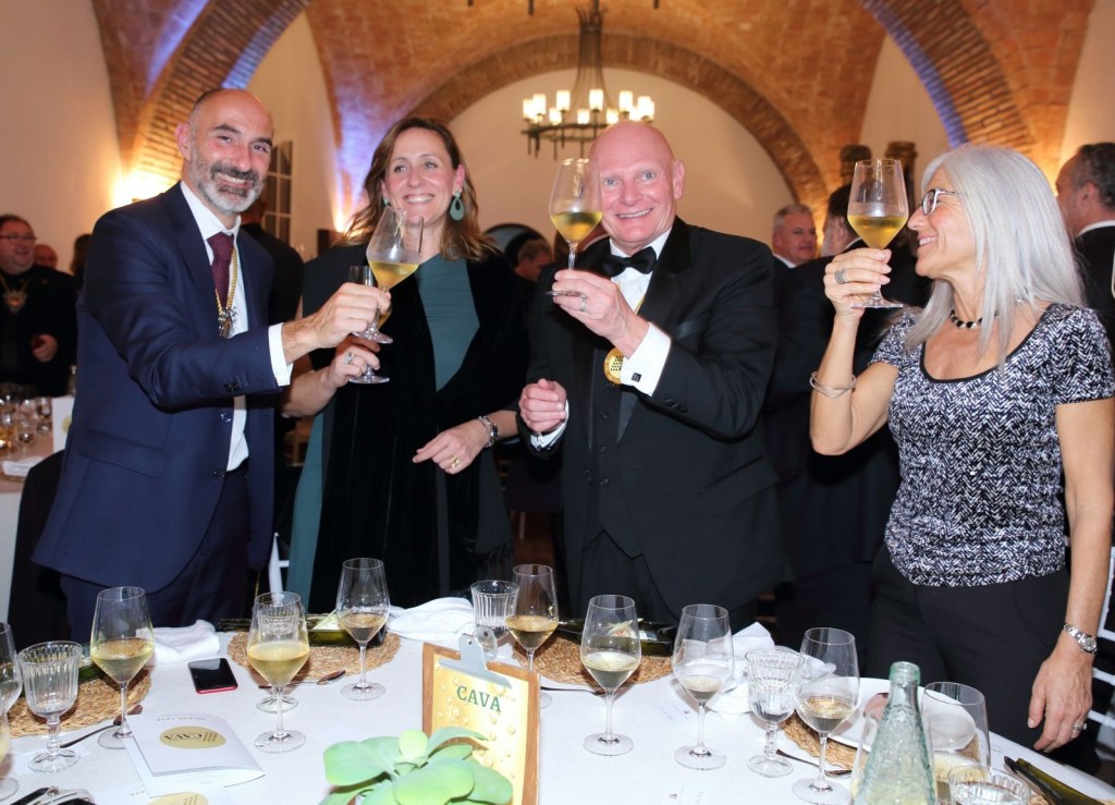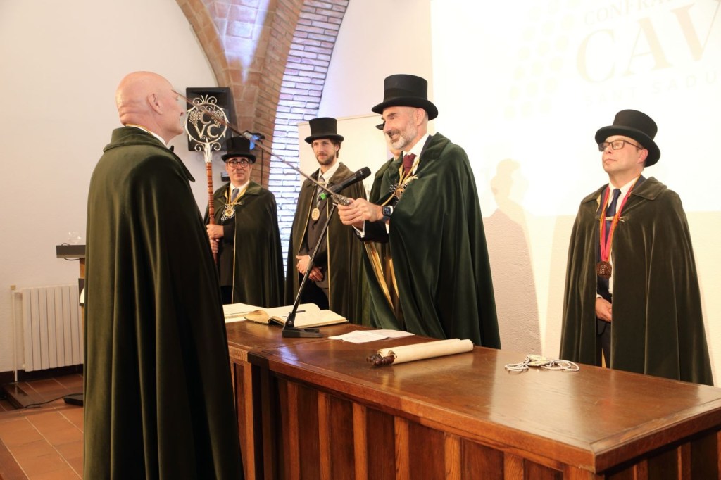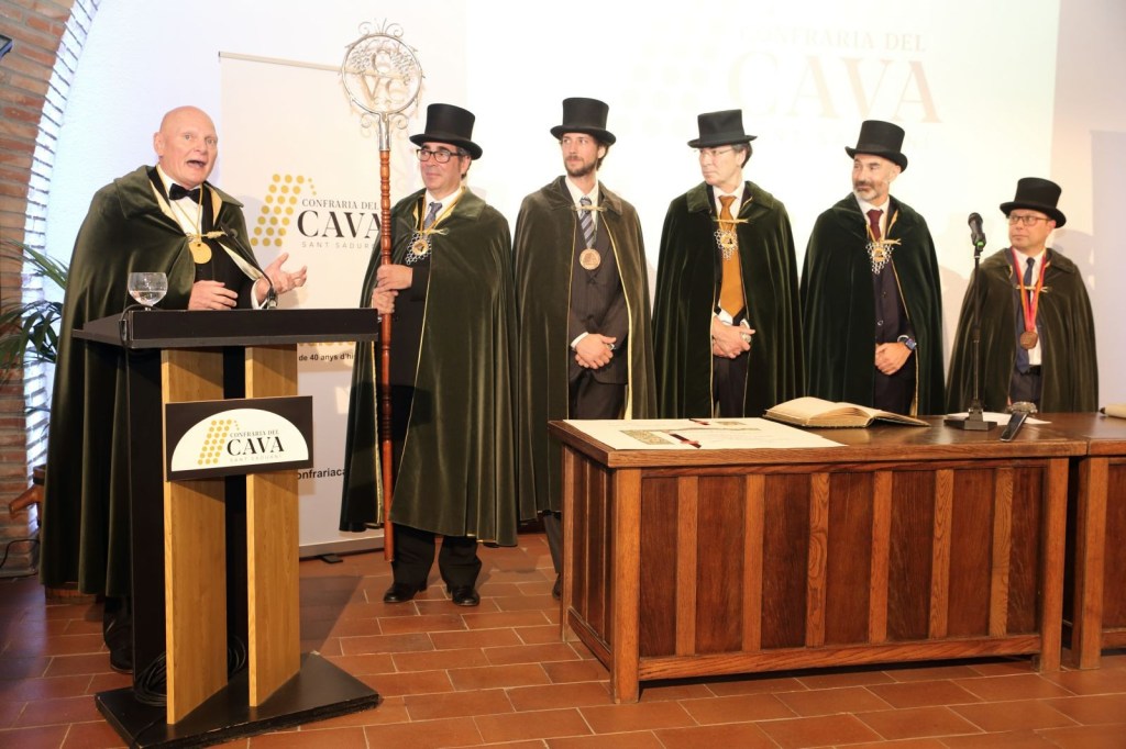 Començant amb el ritual típic organitzat per als nous Confrares, col·locant-li la capa de confrare ,la copa de cava ,el jurament al Cava i la signatura al llibre on totes les Dames i Cavallers Confrares, signen la seva investidura a la Confraria del Cava