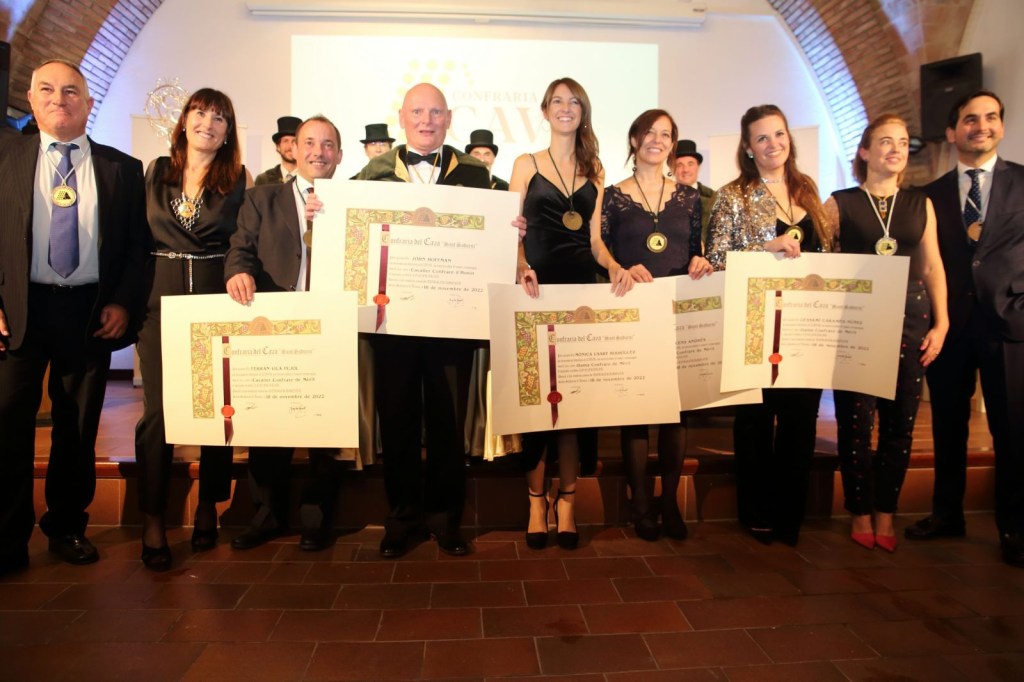 Arribo el moment on després de nomenar nous els Confrares de Mèrit. En aquesta ocasió, van ser la meteoròloga Mònica Usart, la periodista Eva Vicens, el sommelier Ferran Vila i la cuinera i presentadora Gessamí Caramés Pujo a l’estrada el Sr John Hoffman per ser nomenat Confrare d’Honor 2022 un títol que es reserva a la persona que, segons criteri de la Junta Directiva, mereix un reconeixement especial per l’impacte de l’exercici de la seva professió a la societat