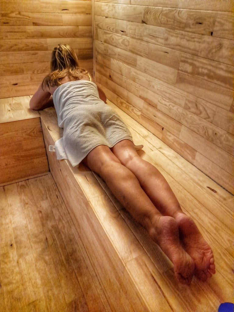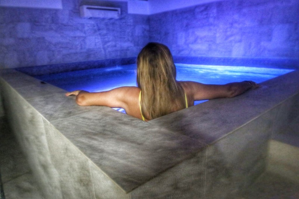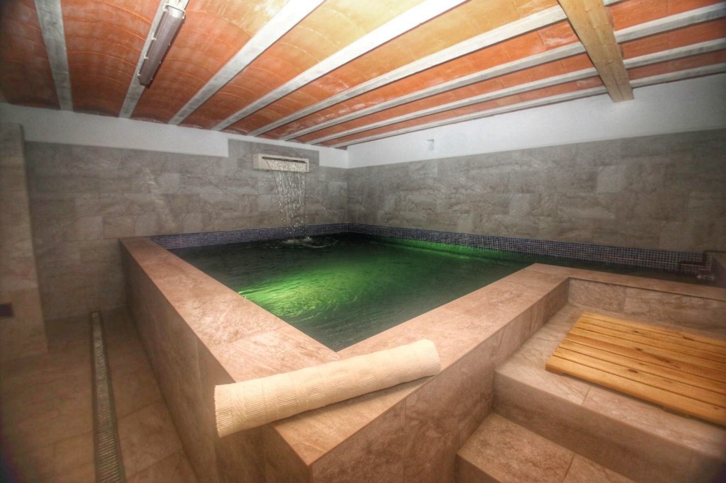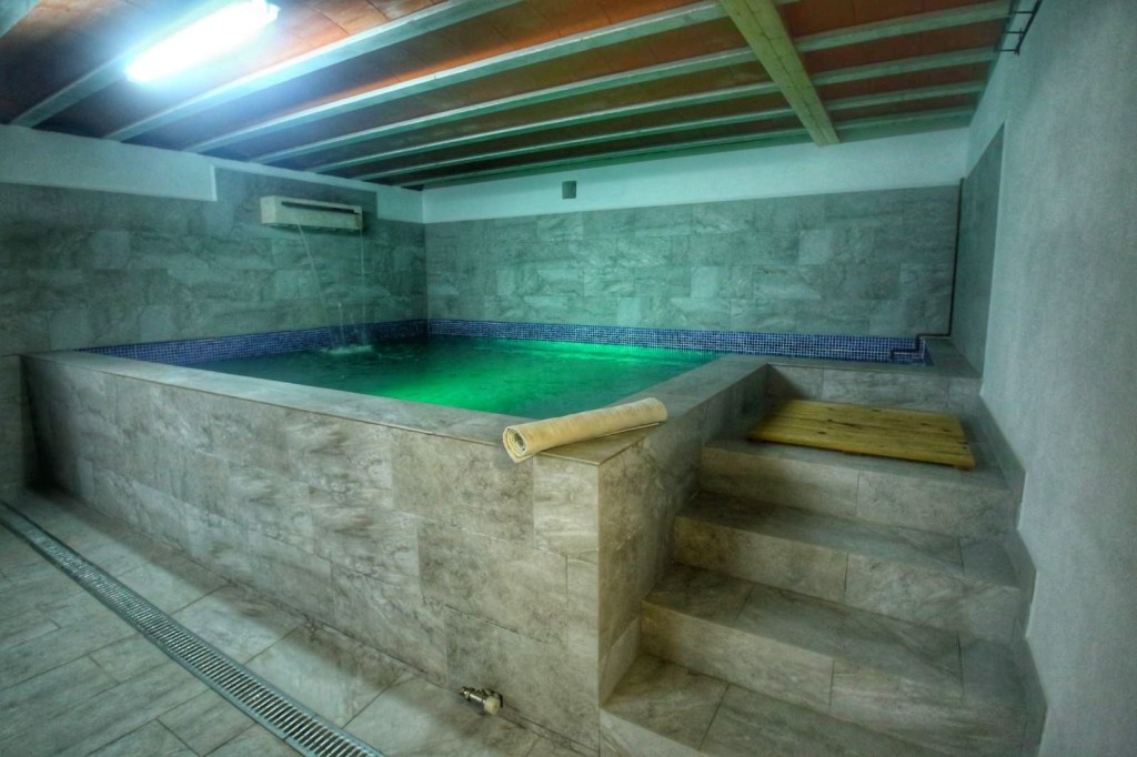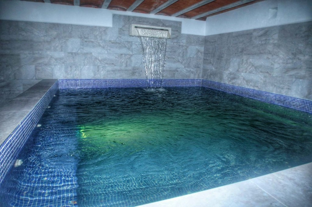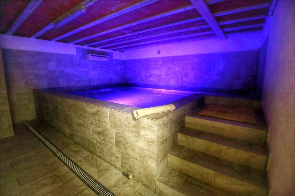 Pero esto no es todo, si ya estábamos en la gloria en aquel lugar, La Mari nos lleva al sótano, y para nuestra sorpresa nos encontramos con un gimnasio, un gran spa con una cascada y con el agua cambiando de color y por si fuera poco, una sauna, espectacular, nadie se espera este maravilloso espacio en una casa rural, ya os hemos empezado diciendo que era una casa rural distinta, especial y es que de verdad lo es. Como no podía ser de otro modo probamos aquella maravilla, nos relajamos en el spa y probamos la sauna, esta experiencia no se puede explicar hay que vivirla para sentirla y apreciarla.