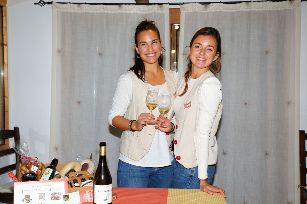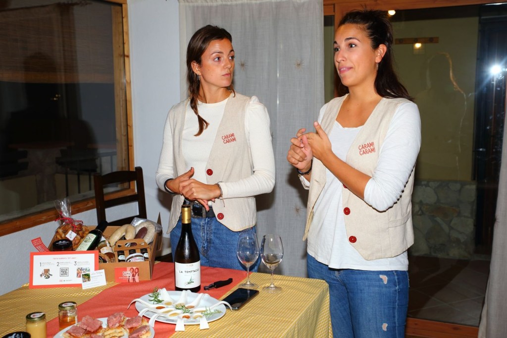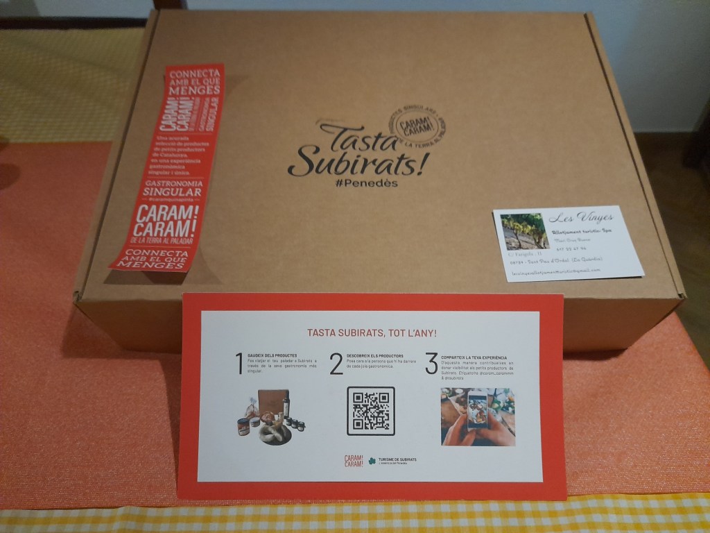 Pero esto no es todo, para cenar, la Mari nos tenía preparada una sorpresa más, una cena realizada por “CARAM! CARAM!”, Caram! Caram!, es un empresa formada por dos jóvenes emprendedoras y creativas mujeres , la Gemma Muray y la Clara Soler, que habiendo trabajado, ambas, en el mundo del enoturismo en el tiempo de la pandemia se unieron y juntaron sus conocimientos y empezaron a explorar en los productos de proximidad y de Catalunya, de los pequeños comercios de productos elaborados por ellos, buenísimos y poco conocidos y valorados, y se pusieron a trabajar con la fusión de estos productos y el maridaje con vinos y cavas y después de mucho tiempo y esfuerzo, ahora te llevan esta experiencia a tu casa, con muchas ganas de poder compartirlo.