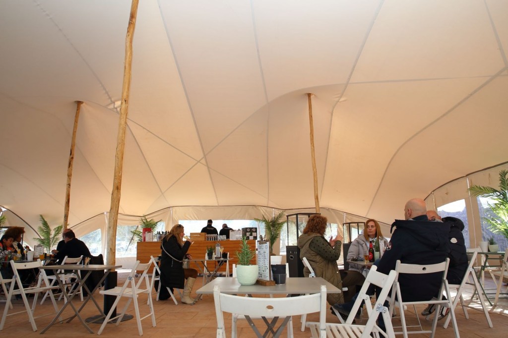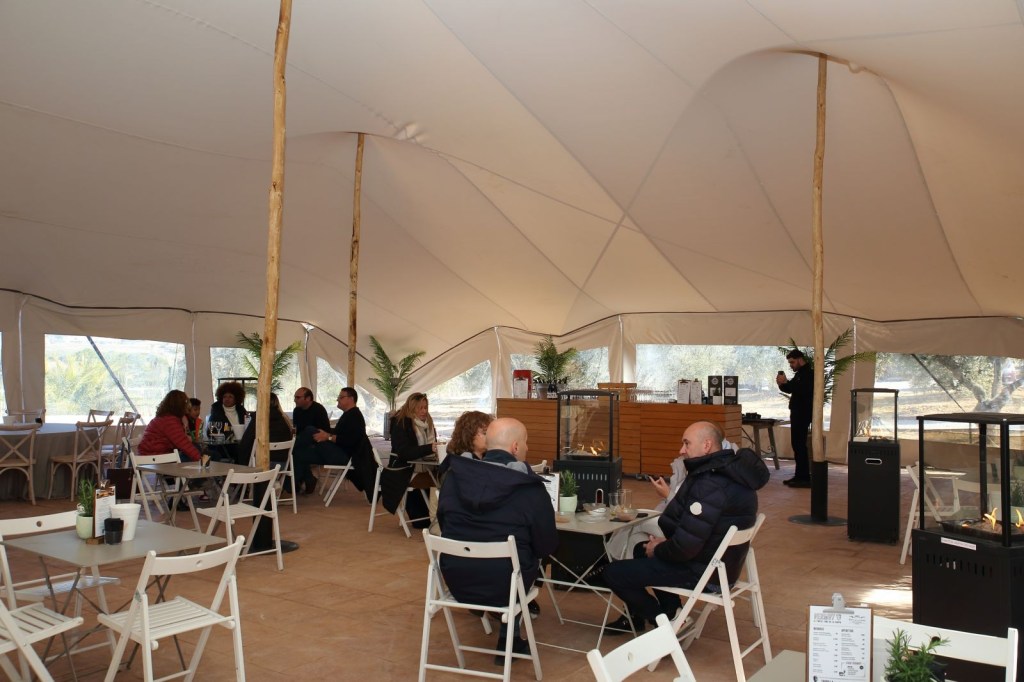 Després de passejar i recrear-nos veient el meravellós lloc, a una gran Jaima que tenen disposada en una àmplia part del jardí, vam fer el vermut, amenitzat amb música en directe a càrrec d’EDU PRATS.